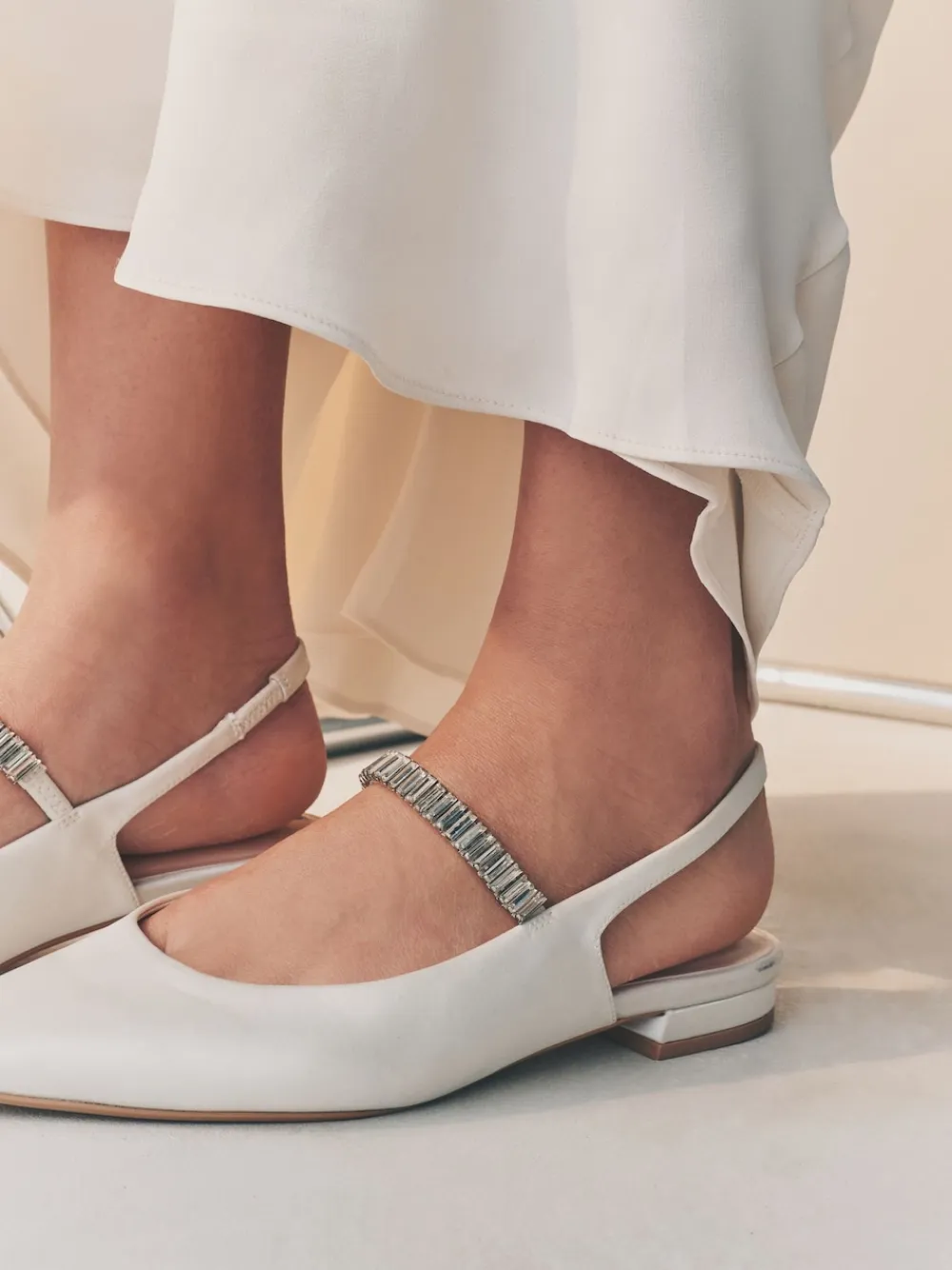 Calling all brides-to-be, we have the perfect footwear for you. Our ivory Forever Comfort mary jane slingback shoes will guarantee comfort for your big day. In a classic point toe shape with a slingback strap, these mary-janes are elevated with a jewel strap for added glam. Complete with Forever Comfort insoles for added cushioning. Point toe Mary-jane shoes Jewel strap detailing Forever Comfort insoles Slingback strap Upper – Textile, Lining & Sock – Other Materials, Sole – Other Materials.