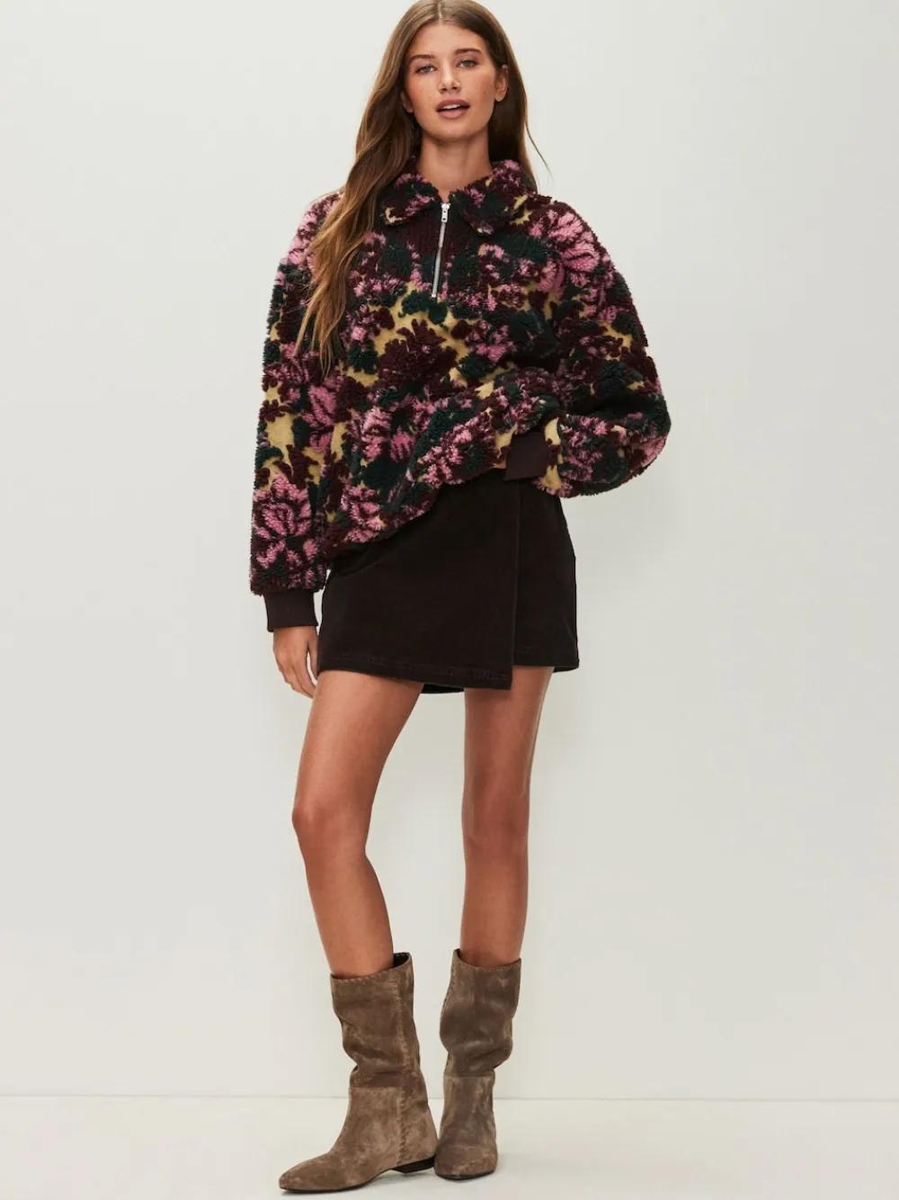 Cosy up in this stylish floral jacquard fleece. The plush borg fabric and chunky collar offer warmth and comfort, while the practical quarter-zip and ribbed cuffs make this a perfect blend of style and practicality for cooler days. Borg fleece Quarter-zip Ribbed cuffs 100% Polyester.