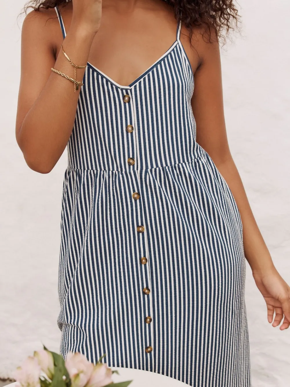 Made from a pure cotton jersey fabric, this midi-length dress features button detailing to the front, thin shoulder straps and a v-shaped neckline Midi-length 100% cotton Button front Adjustable shoulder straps Machine washable. 100% Cotton. Items with the curve logo are available in sizes 18 and above., Our tall collection is designed to fit women 5’10” and above. This has been proportionally increased through the body, leg and sleeve to achieve the perfect fit. Available in sizes 8-20.