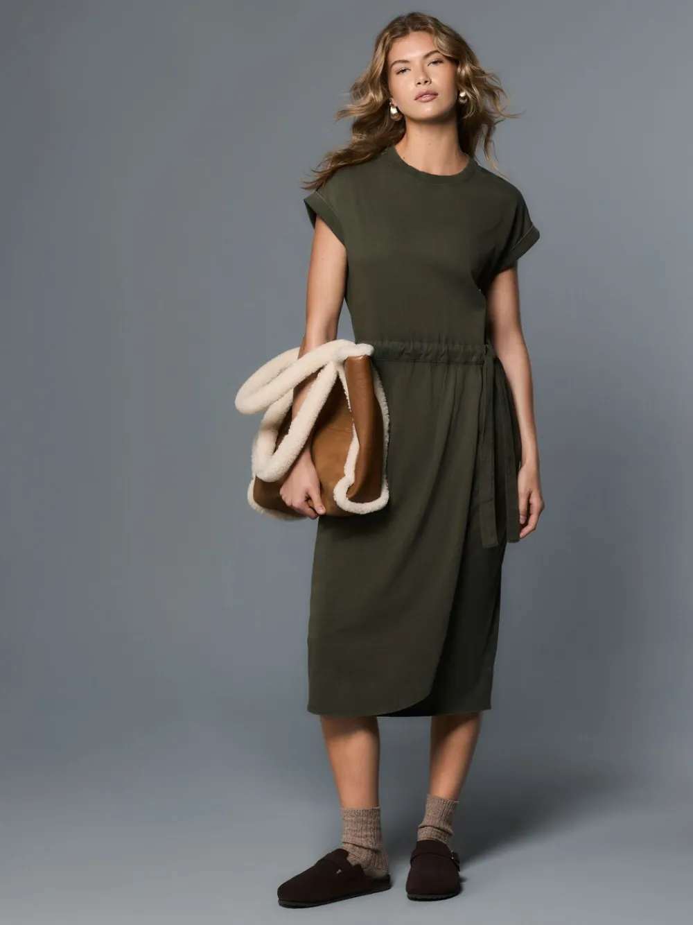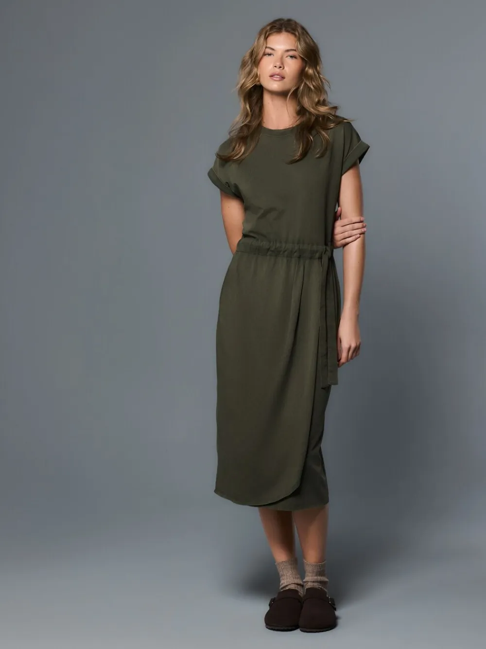 Next Jersey Sarong Tie T-Shirt Dress Washed Khaki Green Discount