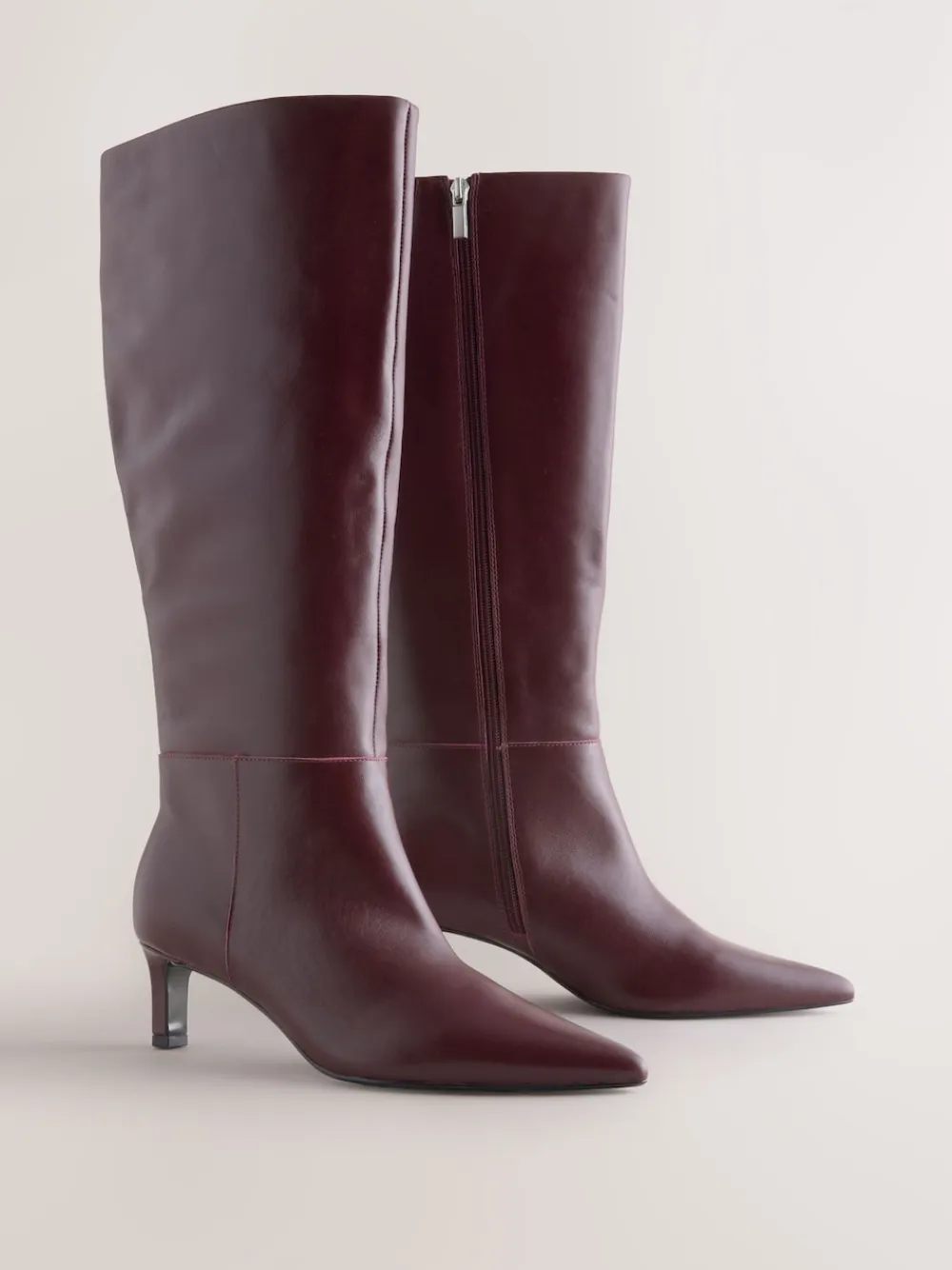 Next Knee High Skinny Heeled Boots Burgundy Red Leather