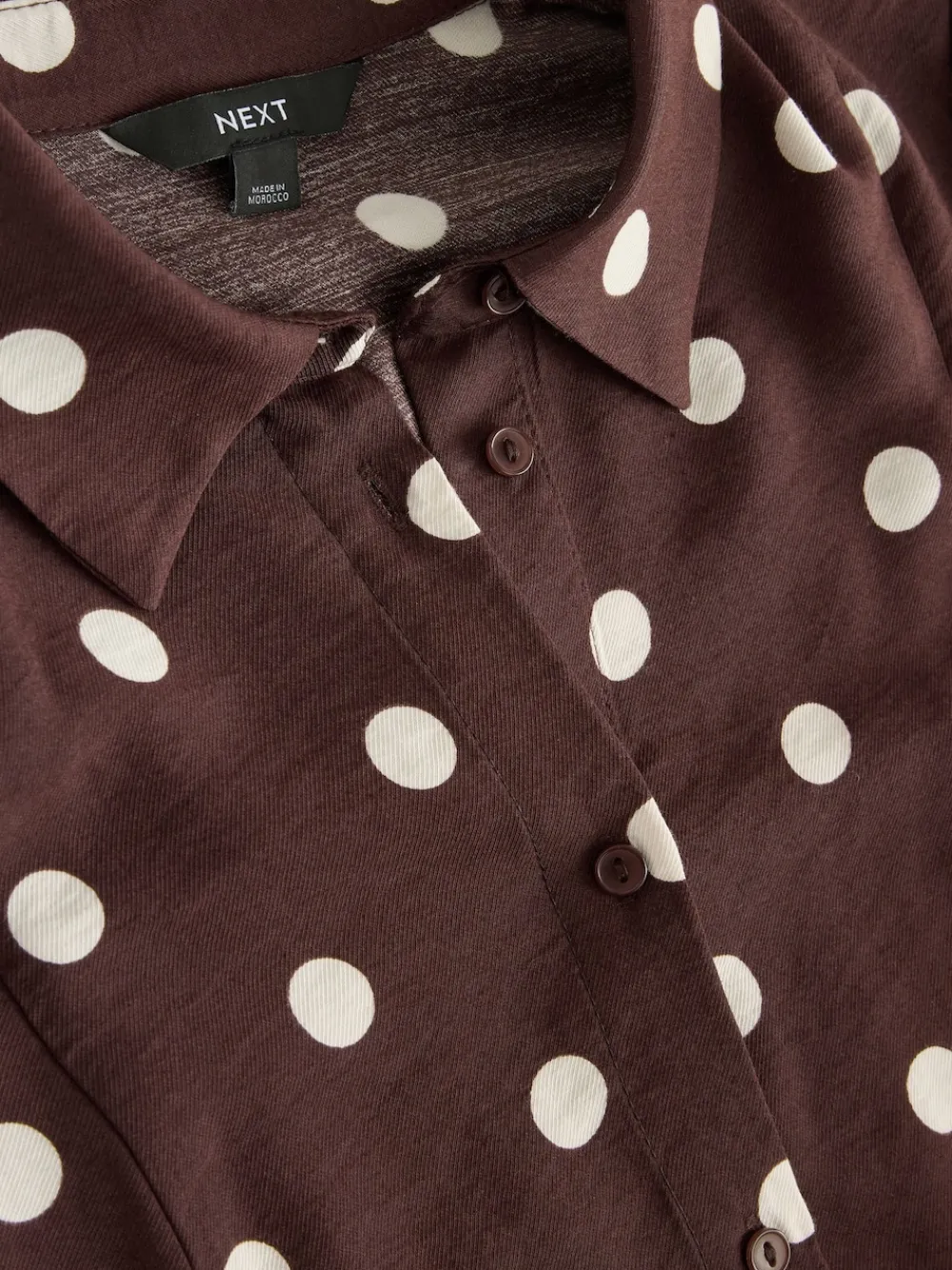 Next Long Sleeve Midi Shirt Dress Chocolate Brown/Ecru Polka Dot Outlet