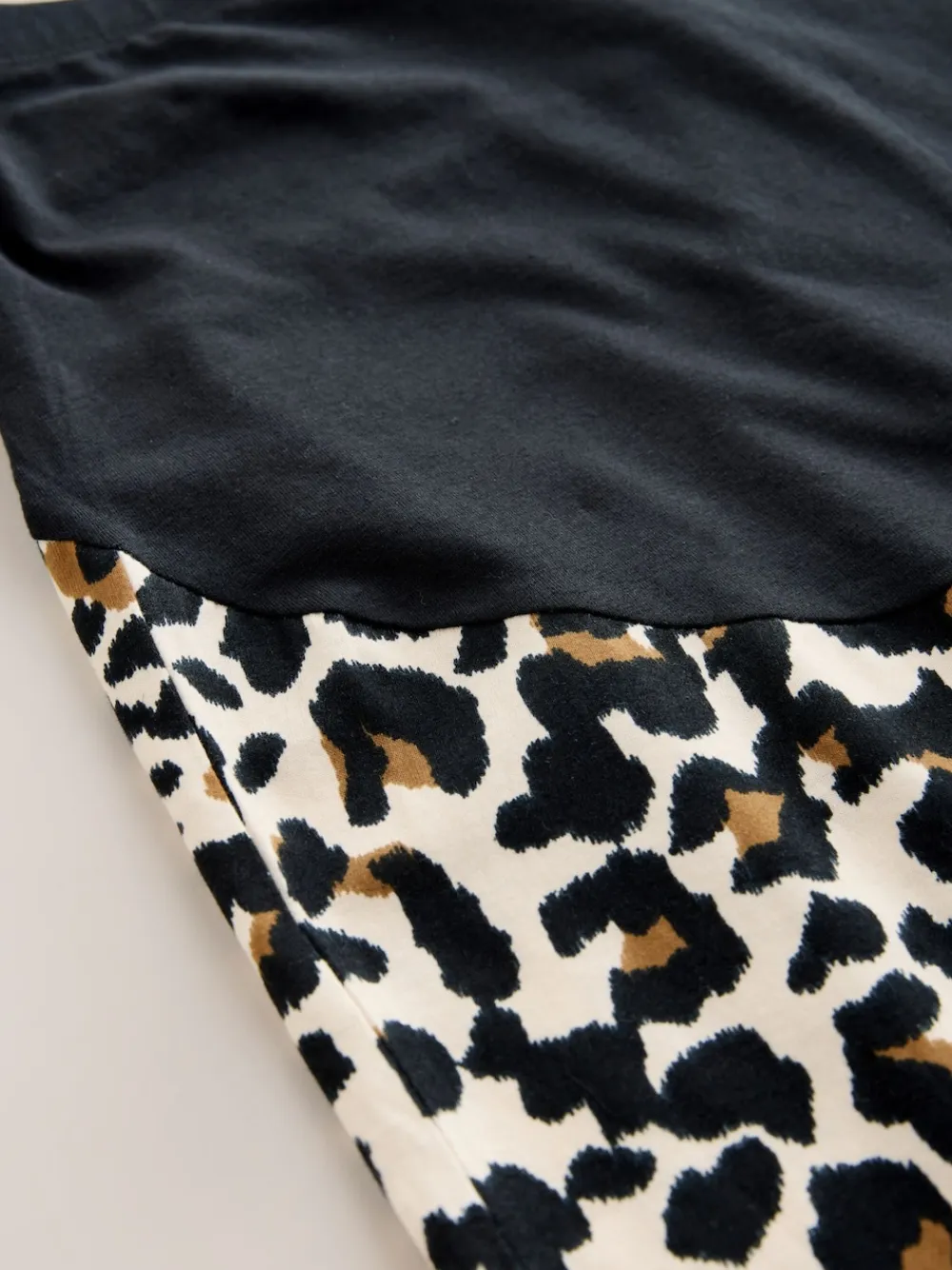 Next Maternity Short Sleeve Pyjamas Charcoal Grey Leopard