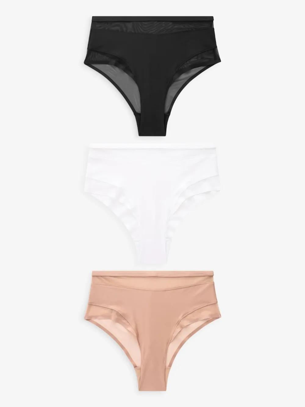 Next Mesh Trim High Waist High Leg Knickers 3 Pack Black/White/Nude Outlet