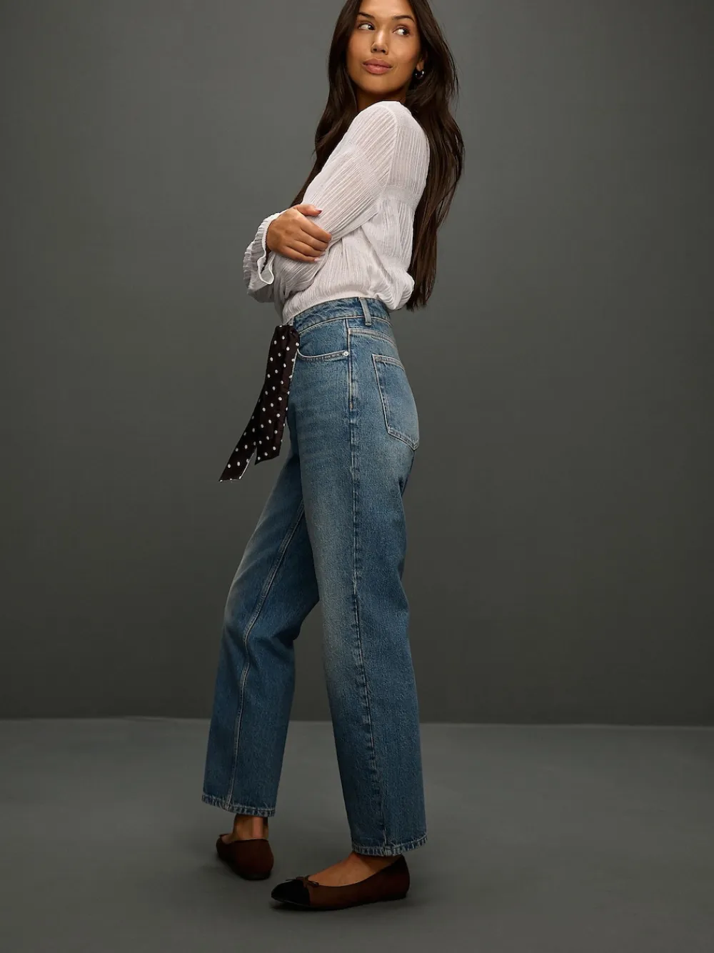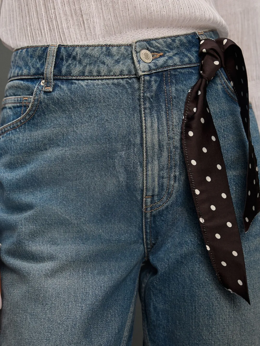 Next Mid Rise Ankle Straight Leg Jeans With Scarf Mid Blue Polka Dot Online