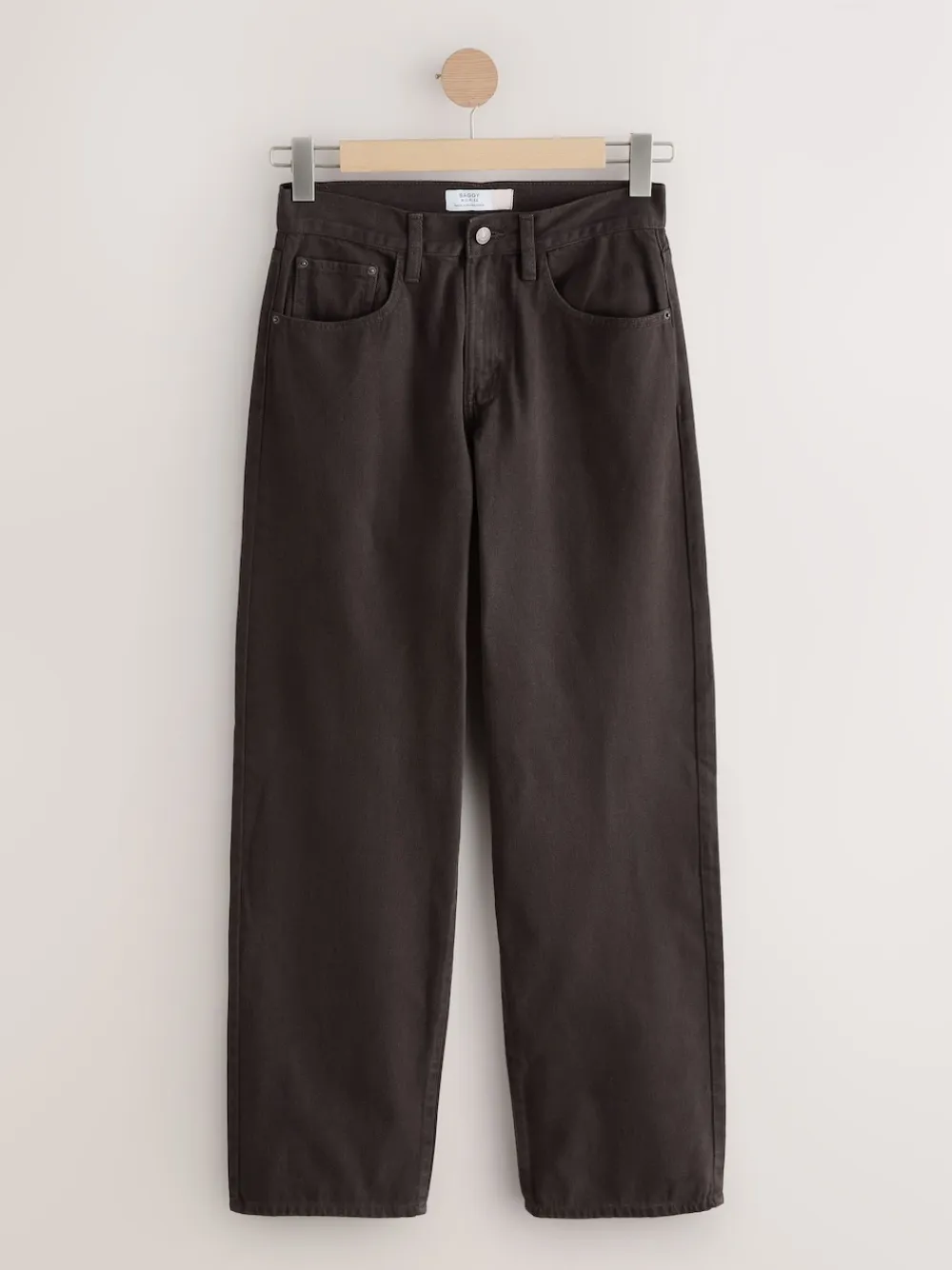 Next Mid Rise Wide Leg Baggy Jeans Chocolate Brown Sale