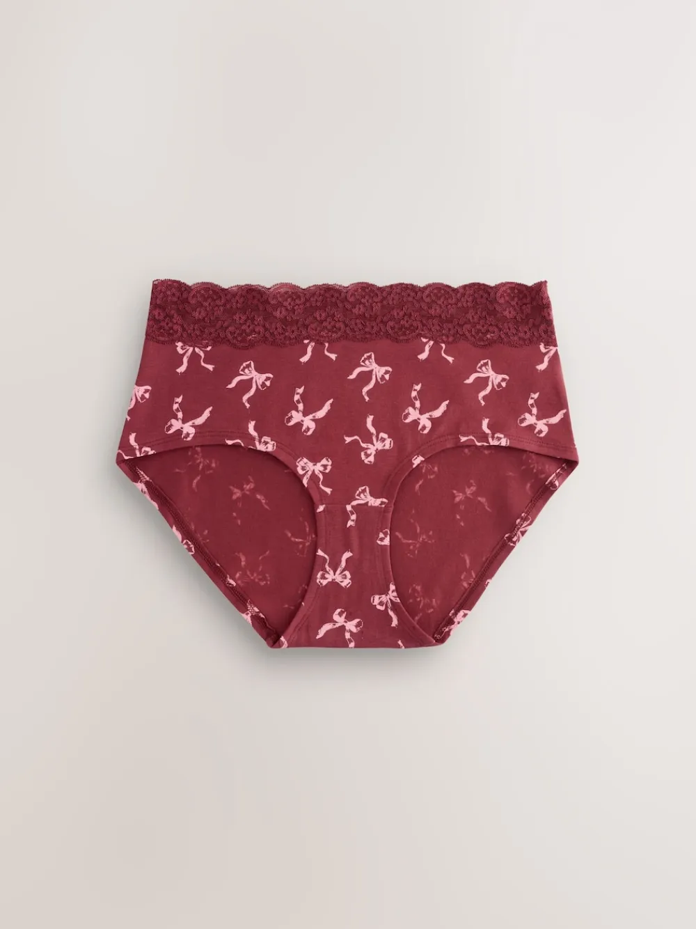 Next Midi Cotton Lace Knickers 4 Pack Berry Bow Print Best