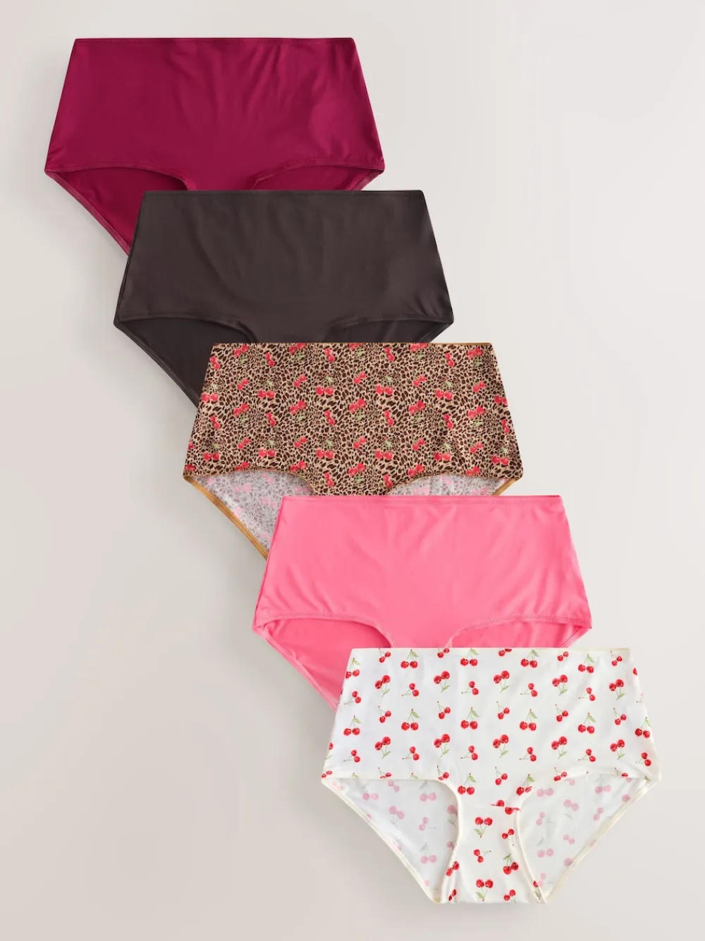 Next Midi Microfibre Knickers 5 Pack Leopard/Cherry Print Hot