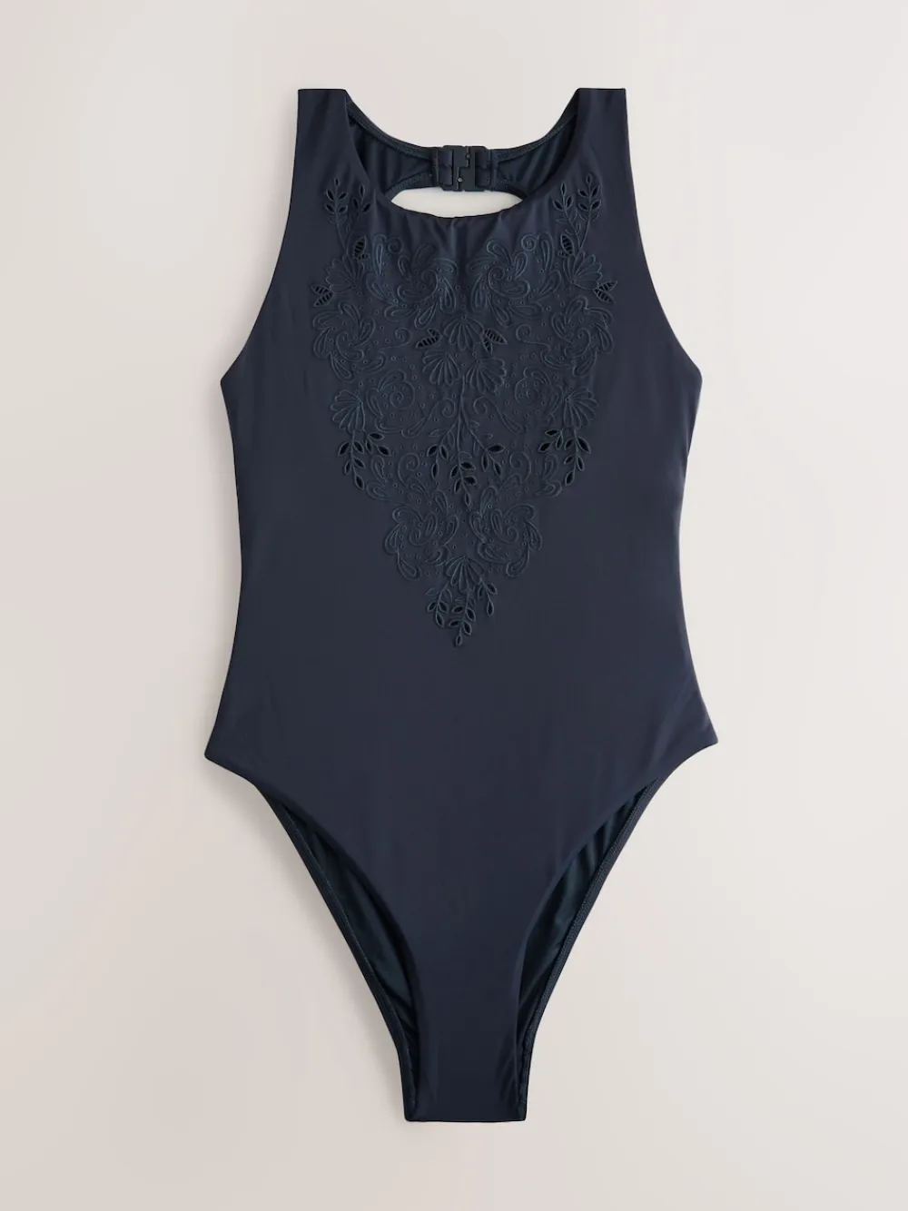 Be the first to review “Next Navy Blue Broderie Cutwork High Neck Tummy Control Swimsuit New” Cancel reply