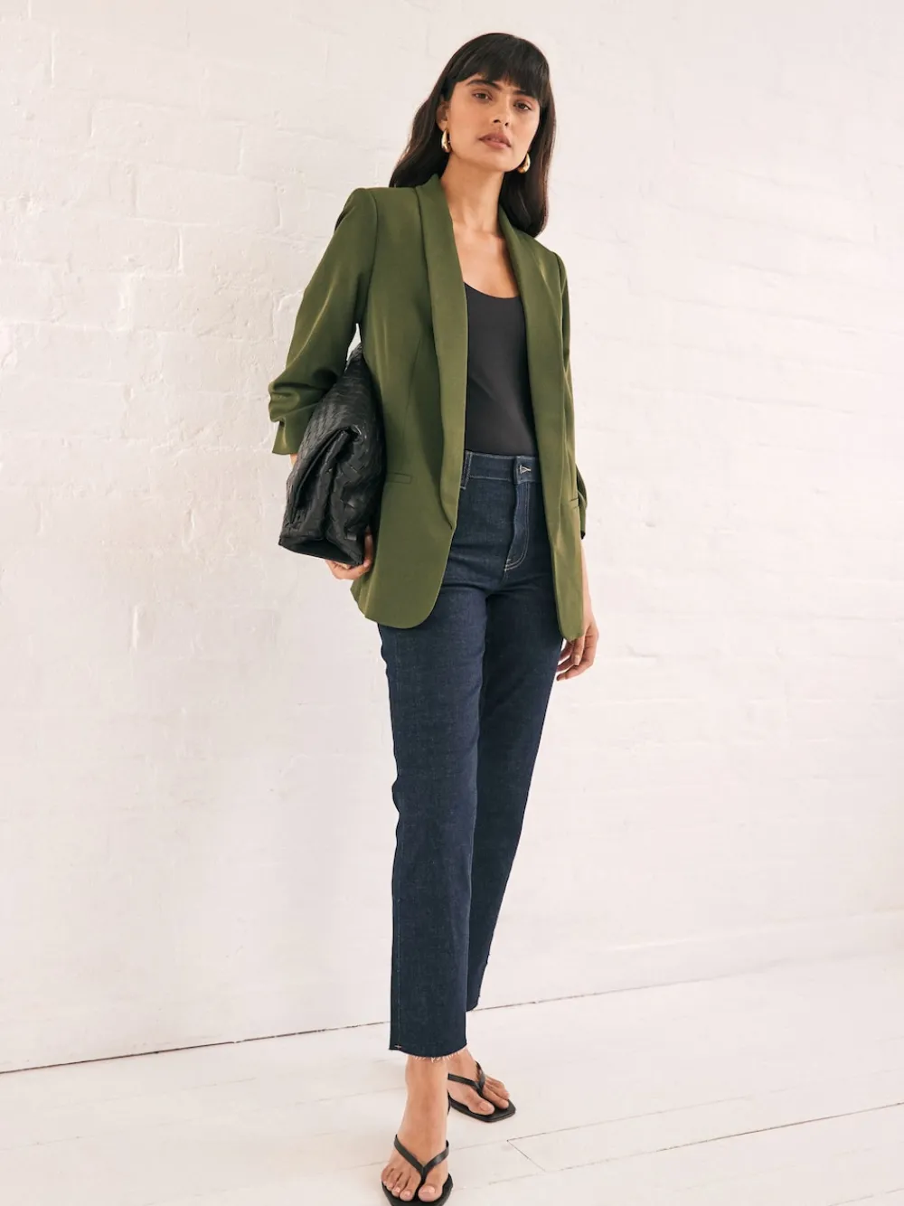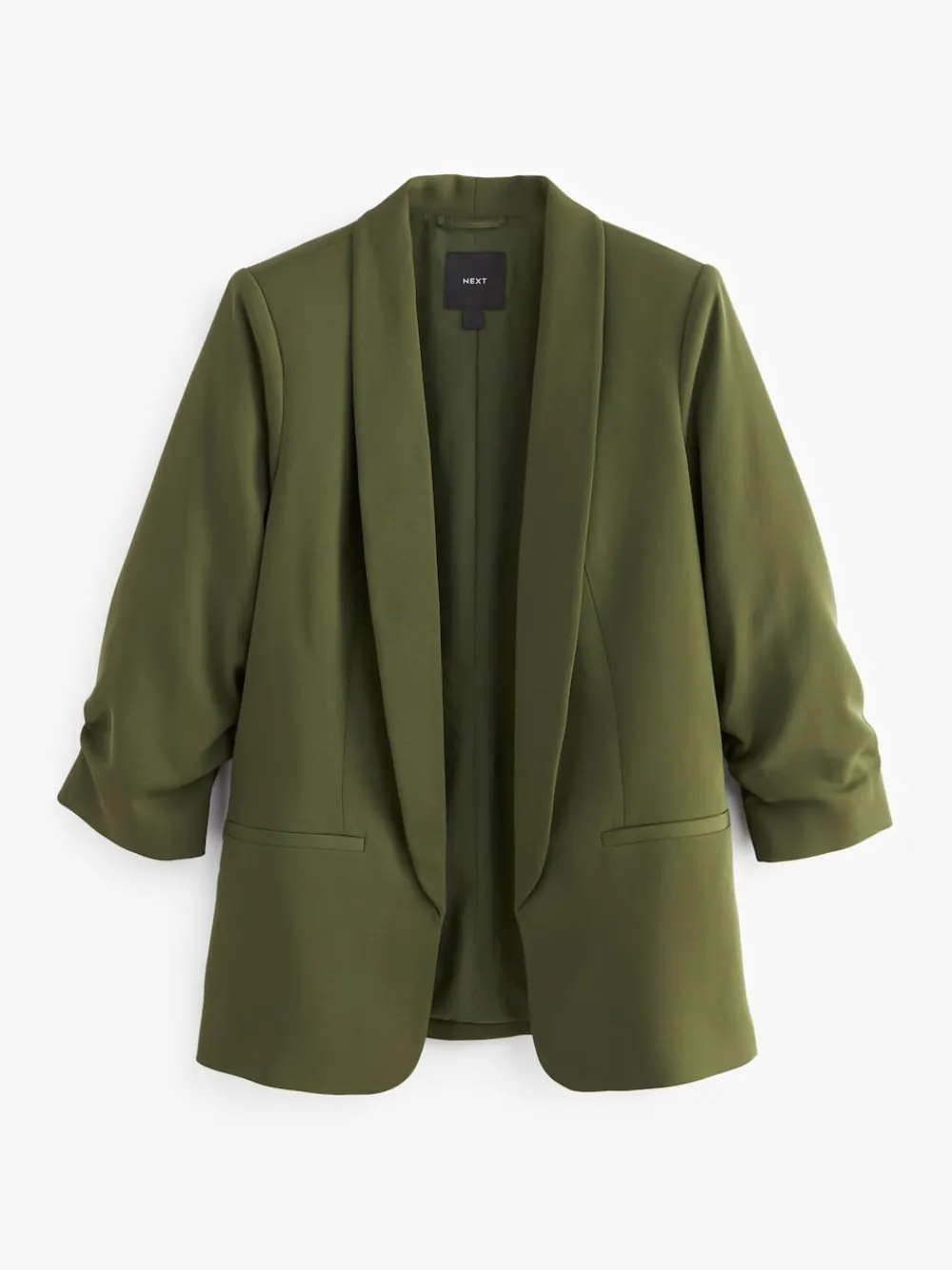 Next Olive Green Relaxed Ruched Sleeve Blazer New