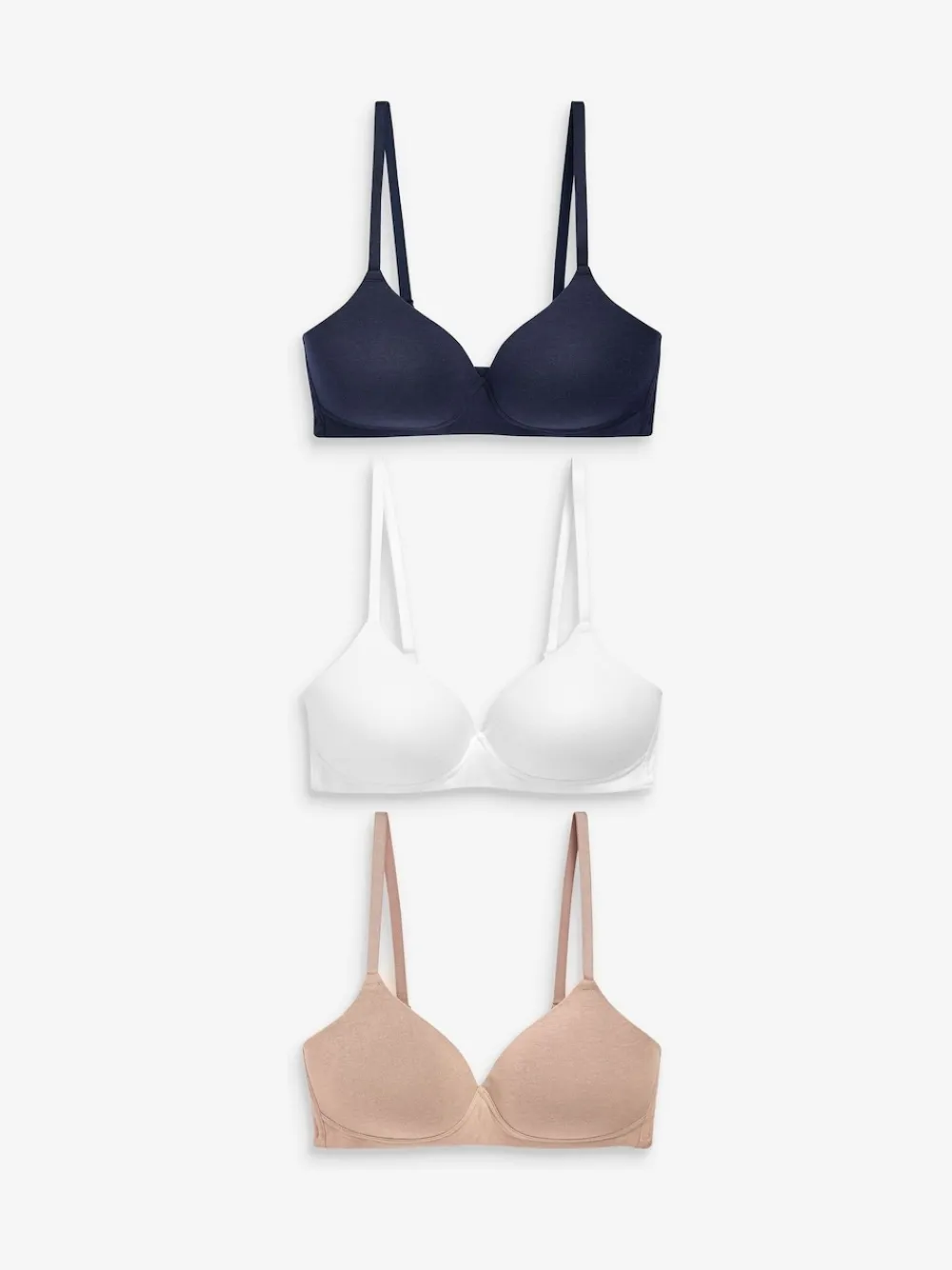 Next Pad Non Wire Cotton Blend Ultimate Comfort Bras 3 Pack White/Navy Blue/Pink Hot