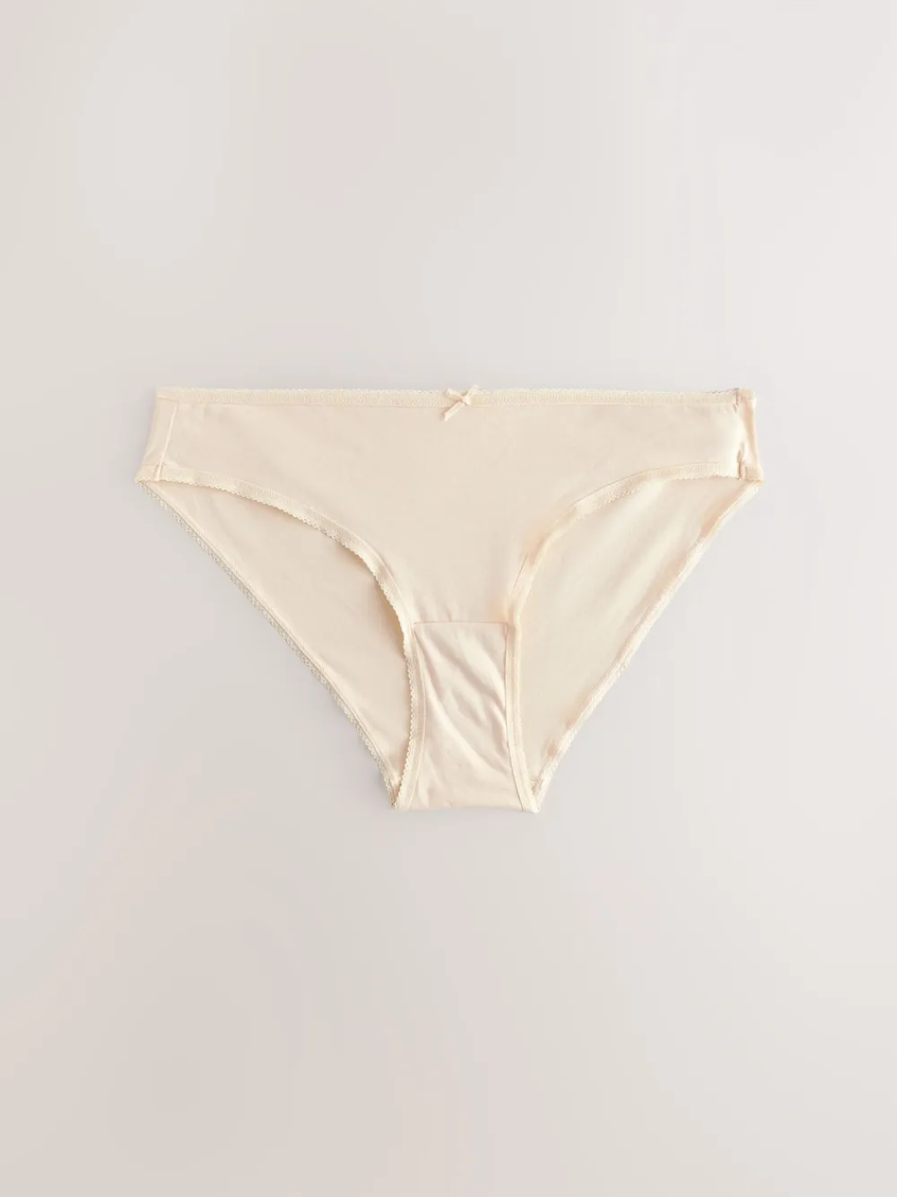 Our bestselling everyday knickers. Naturally breathable cotton for all day comfort. Comes in a range of pack size, shape and colour to suit all customers. Machine washable. 5 x Knickers Main 95% Cotton, 5% Elastane. Gusset 100% Cotton. Items with the curve logo are available in sizes 18 and above.