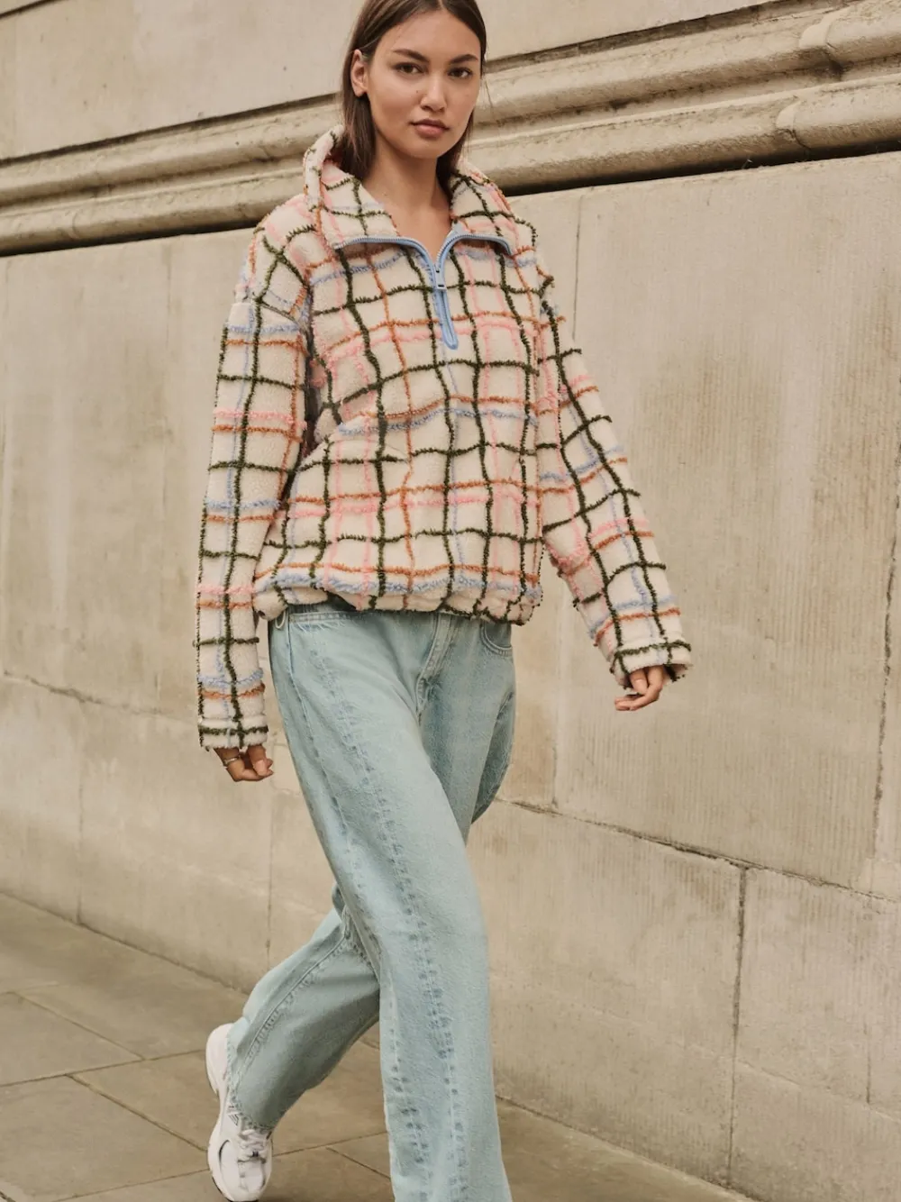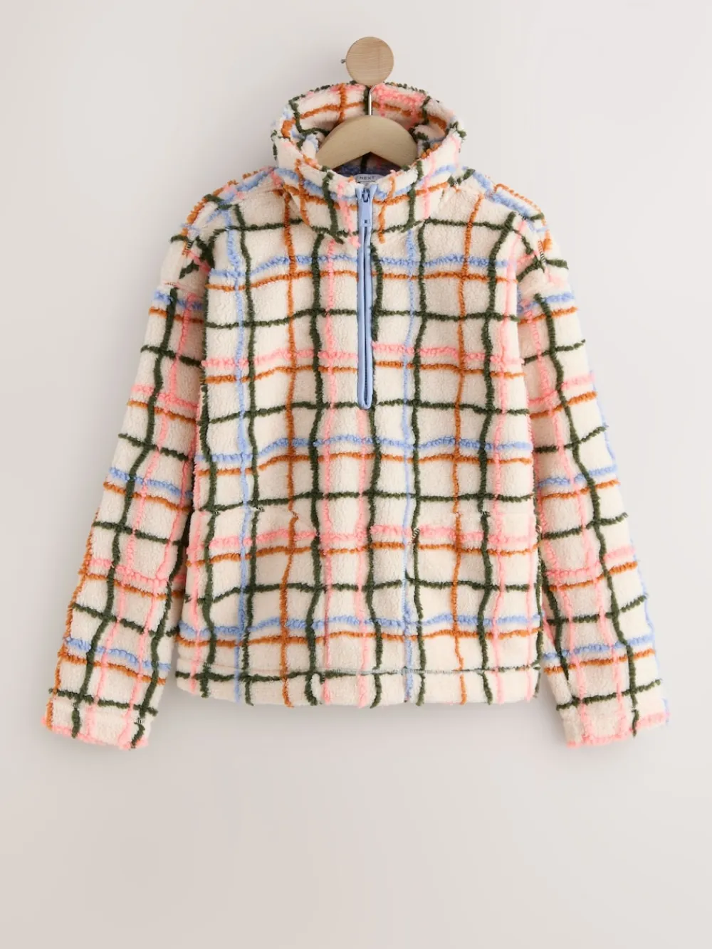 Next Pink/ Ecru Check Soft Touch Cosy Teddy Borg Quarter Zip Fleece New
