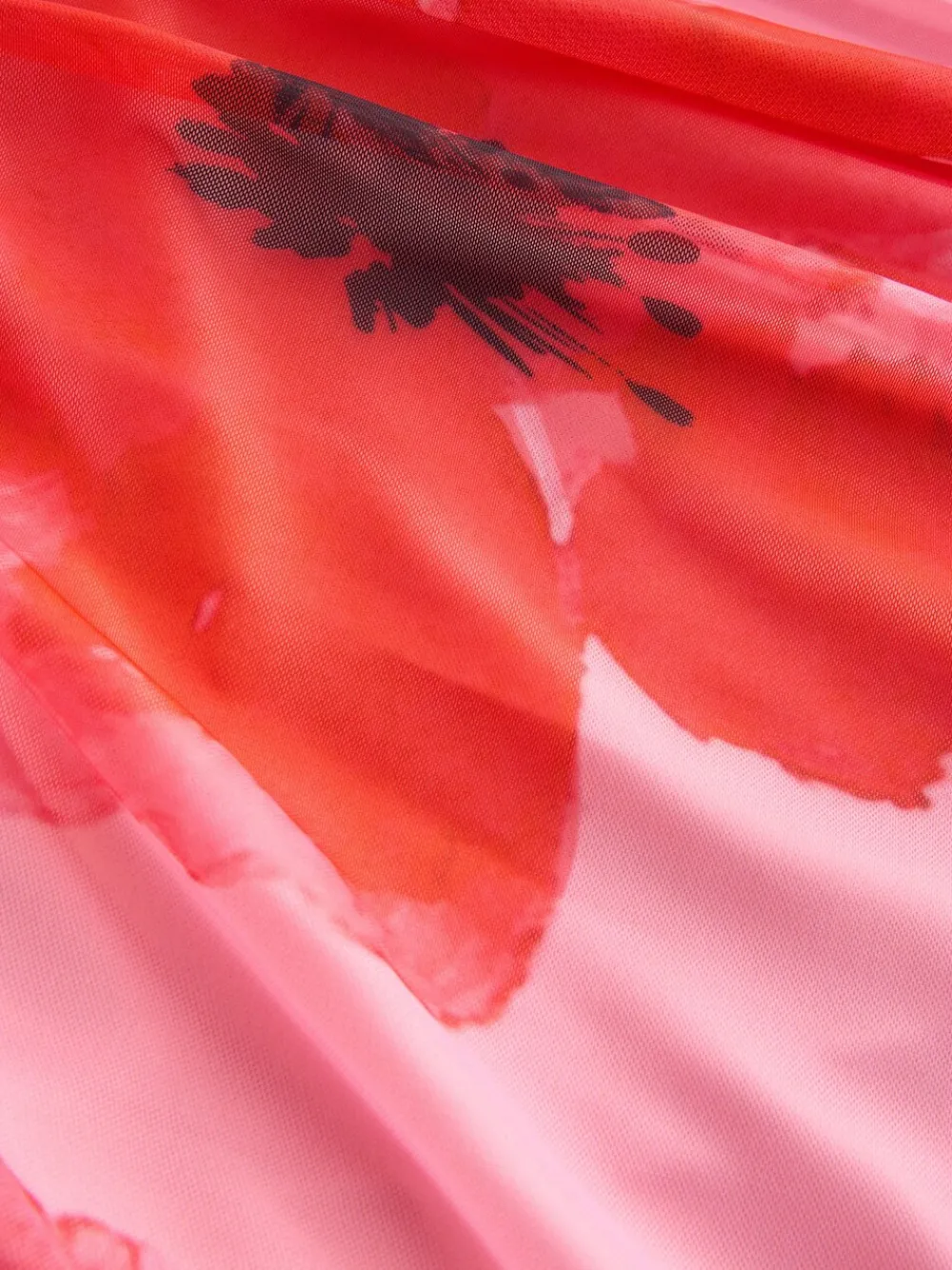 Next Pleated Mesh Print V-Neck Occasion Maxi Dress Red/Pink Floral Clearance