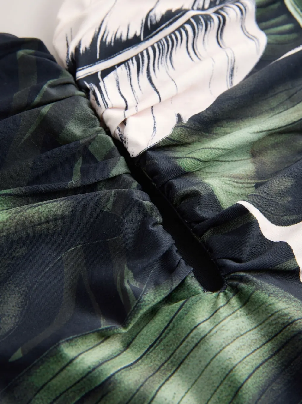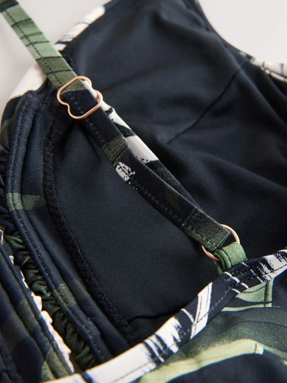 Make a summer style statement with this swimsuit. It features a plunging neckline and shaping mesh to the stomach for a smooth look. The swimsuit also includes central trim detailing and is made with SPF 50+ fabric. Plunge neckline Tummy control mesh SPF 50+ fabric Trim detailing Black/Green leaf print Main 85% Nylon, 15% LYCRA® XTRA LIFE™ elastane. Lining 92% Recycled polyester, 8% Elastane. Mesh 88% Nylon, 12% Elastane. Items with the curve logo are available in sizes 18 and above., Our tall collection is designed to fit women 5’10” and above. This has been proportionally increased through the body, leg and sleeve to achieve the perfect fit. Available in sizes 8-20.