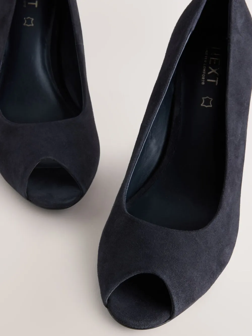 Be the first to review “Next Premium Leather Peep Toe Heels Navy Suede New” Cancel reply