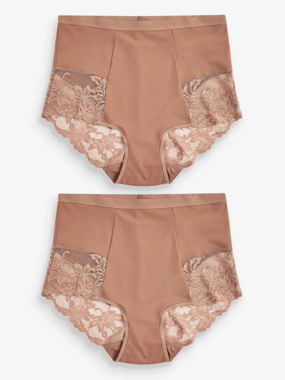 Next Print Tummy Control Shaping Lace Back Brazilian Knickers 2 Pack Caramel Nude Best