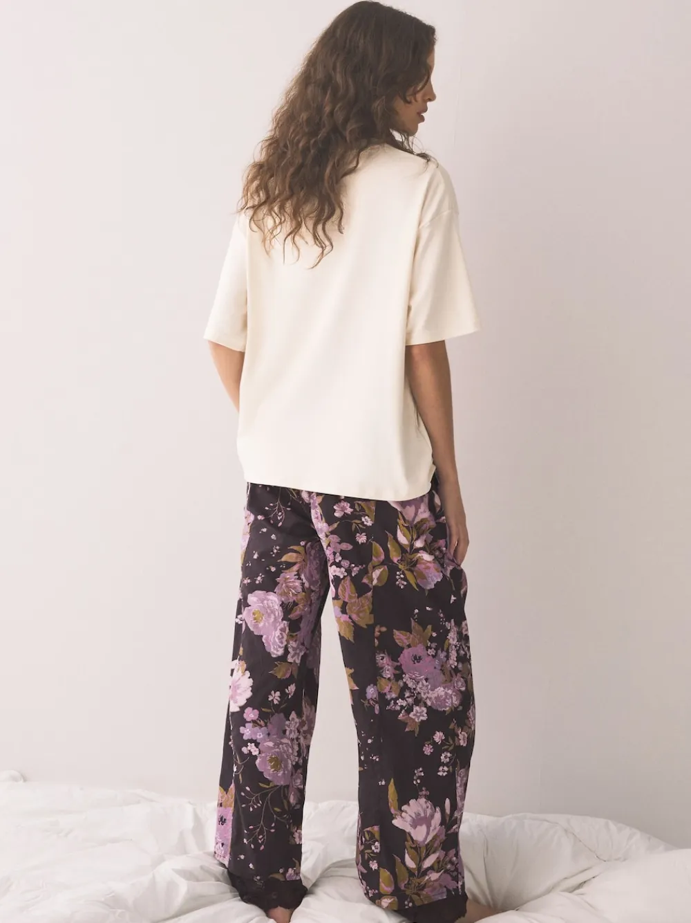 Drift off in style with this super soft and comfy pyjama set. It features a plain short sleeve top with a striking floral print chest graphic, paired with beautiful all-over floral pattern trousers. Perfect for relaxing at bedtime. Floral print graphic on top All-over floral print on trousers Short sleeve top Super soft and comfy Machine washable. T-shirt and Trouser 100% Cotton. Items with the curve logo are available in sizes 18 and above., Warning: Keep away from fire and flames.