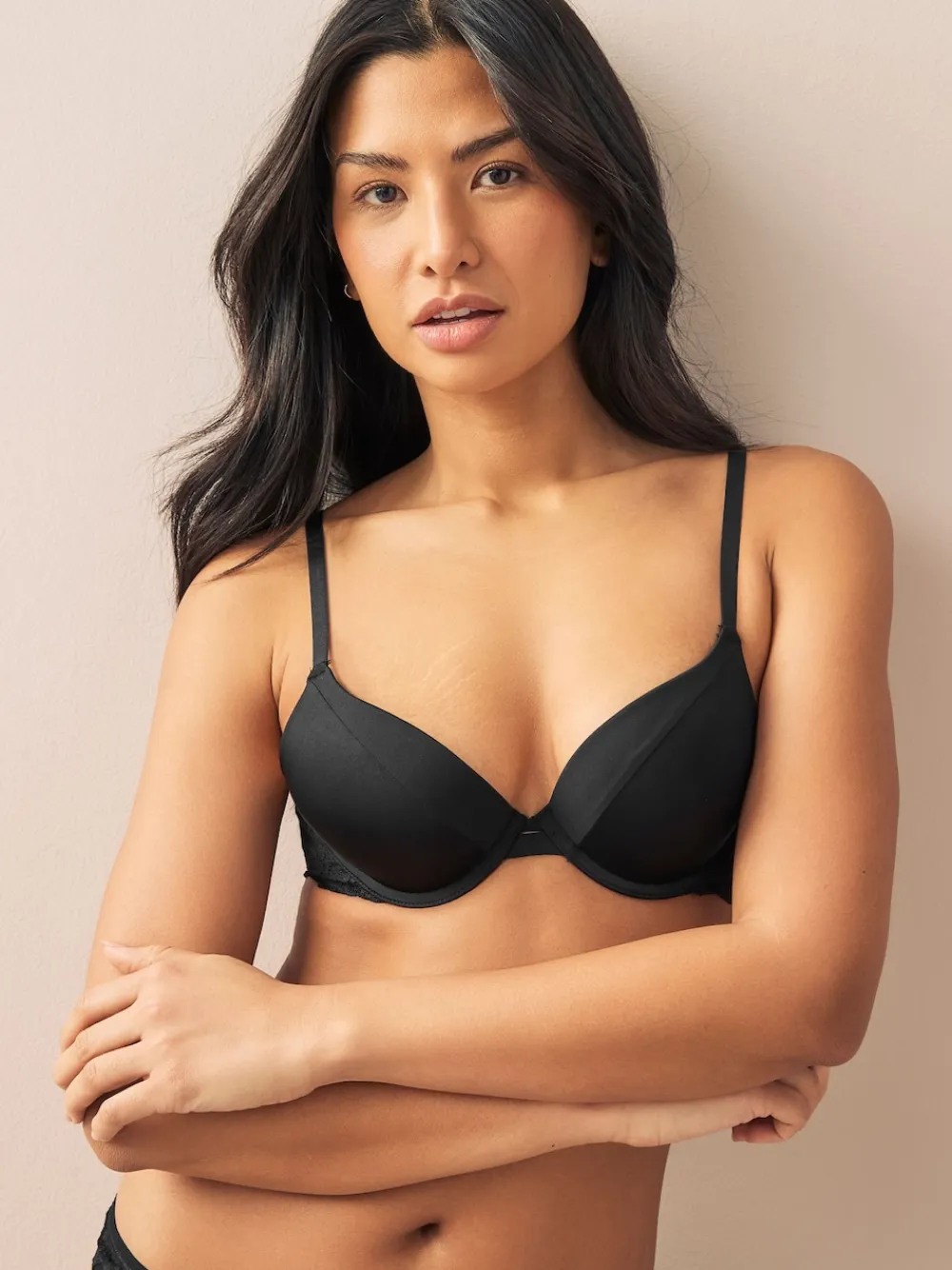 Add a little confidence to your everyday lingerie drawer with our two-pack push-up plunge bra. Ideal for low necklines as well as everyday tanks and T-Shirts in black/white, the supportive cups and plunge neck will give you a comfortable lift whilst the beautiful lace detail adds feminine elegance. Push-up T-Shirt bras 2-pack Plunge neck Lace detail Machine washable. 2 x Bra 65% Nylon, 23% Polyester, 12% Elastane. **Please click here to use the NEW bra size calculator** CoppaFeel! are the UK’s only youth focused breast cancer awareness charity on a mission to get every young person checking their chest. Next are proud to support their bra hijack campaign.