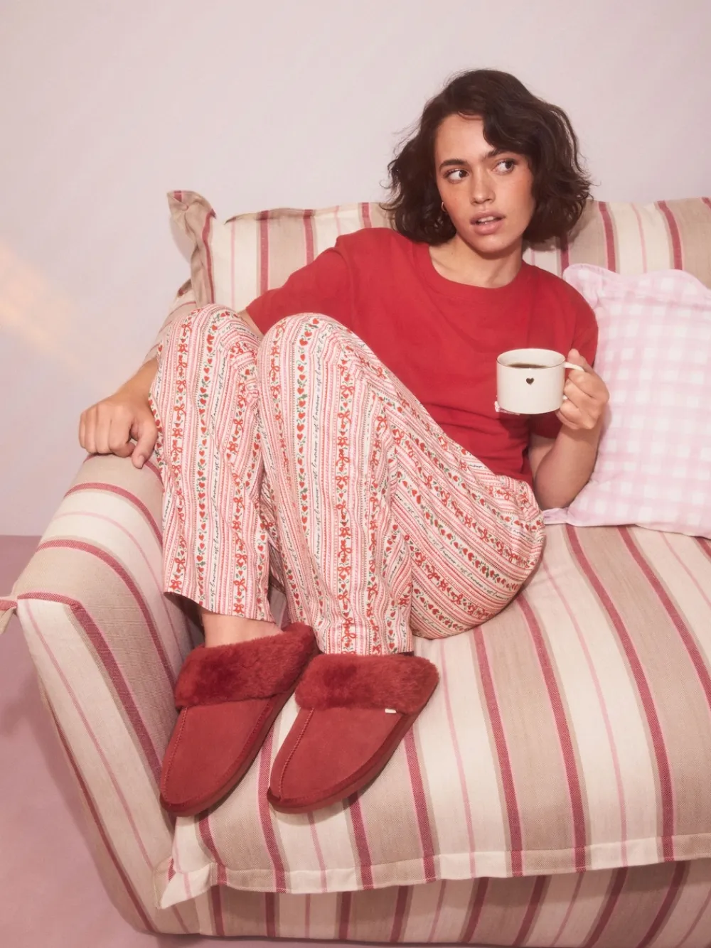 Next Red Faux Fur Lined Suede Mule Slippers Outlet