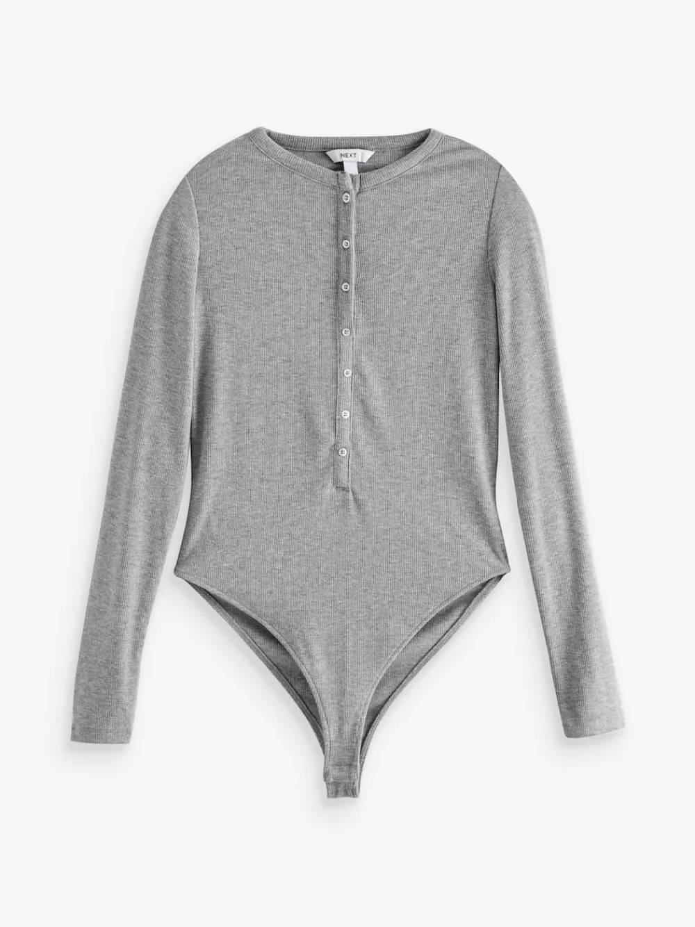 Next Ribbed Long Sleeve Henley Bodysuit Grey Online