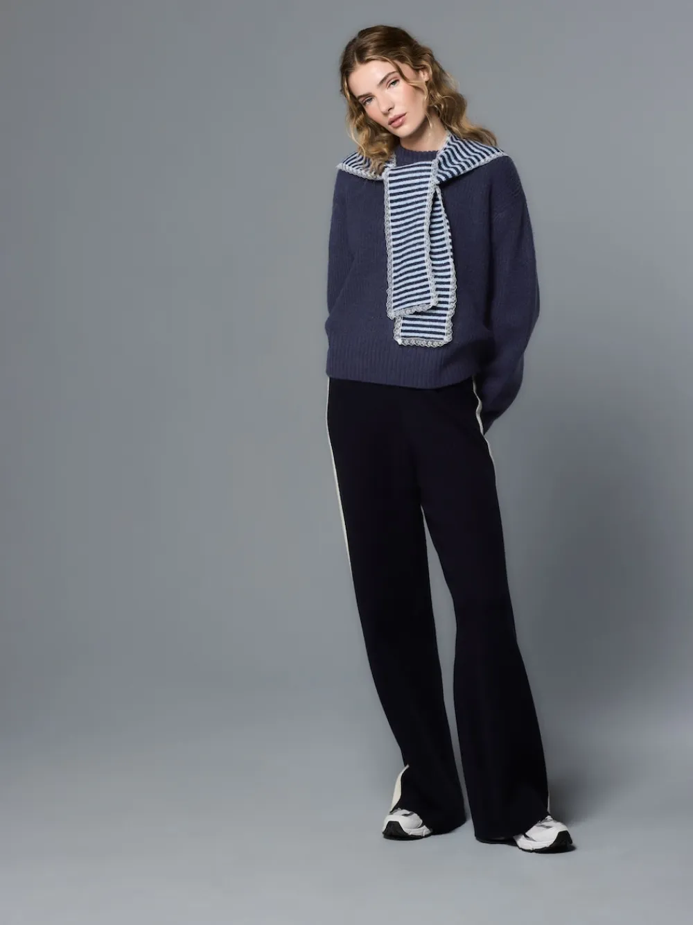 Be the first to review “Next Scarf Layer Lace Trim Knitted Jumper Navy Blue Stripe New” Cancel reply
