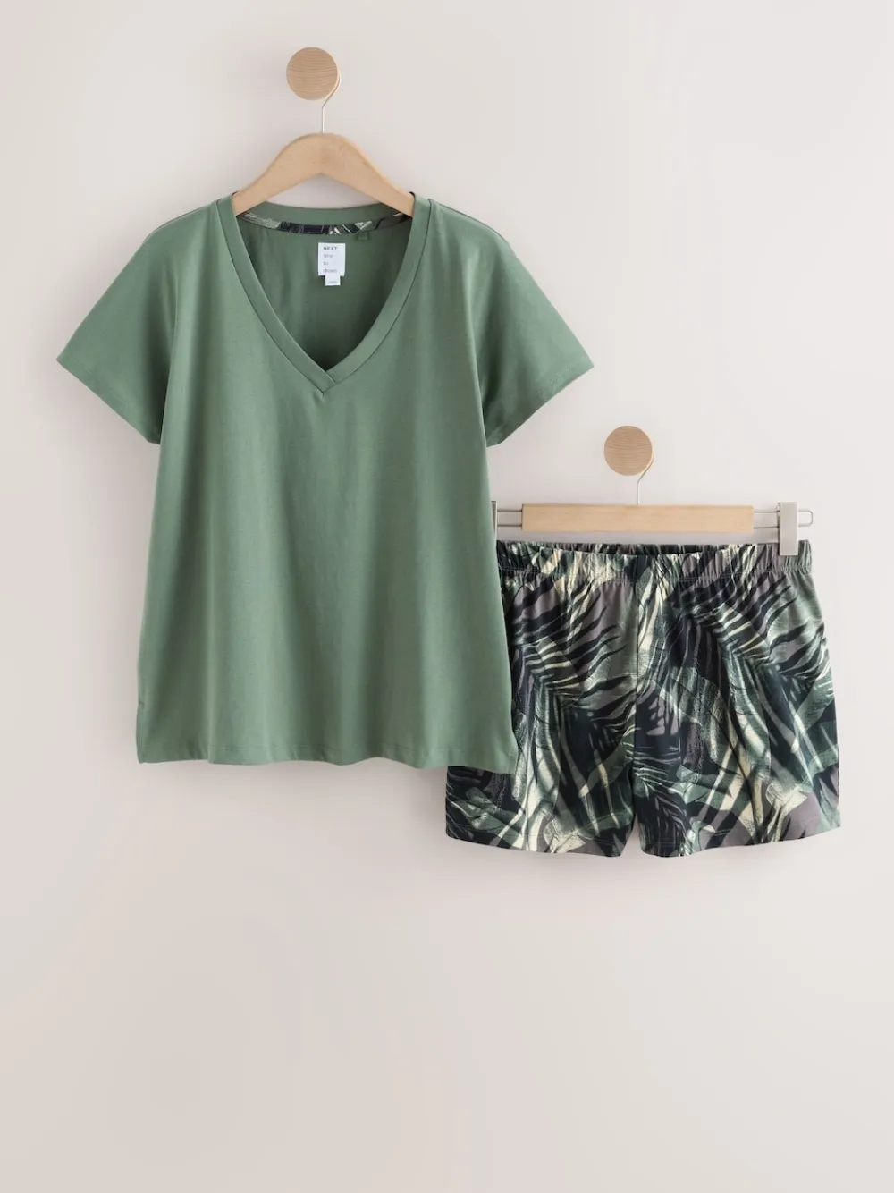 Next Short Pyjamas Set Khaki Green Palm Hot