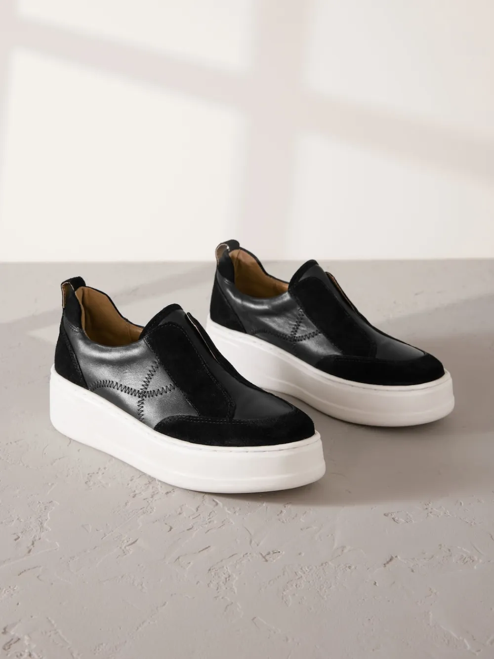 Be the first to review “Next Slip On Signature Leather Chunky Wedge Platform Trainers Black Clearance” Cancel reply