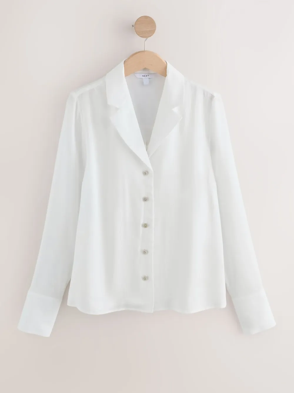 Next Soft Revere Collar Long Sleeve Shirt White Clearance