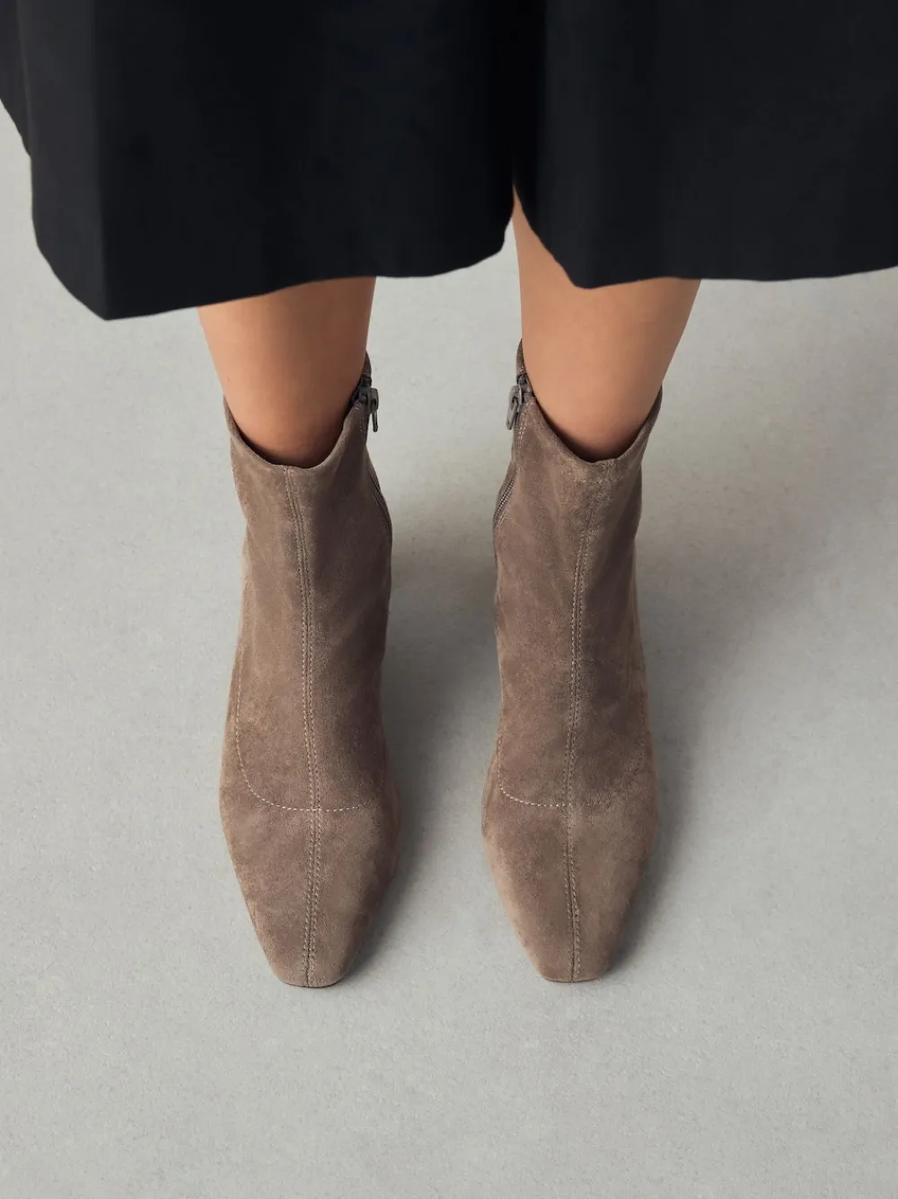 Next Standard/Wide Fit Chisel Toe Block Heel Sock Boots Neutral Taupe Best