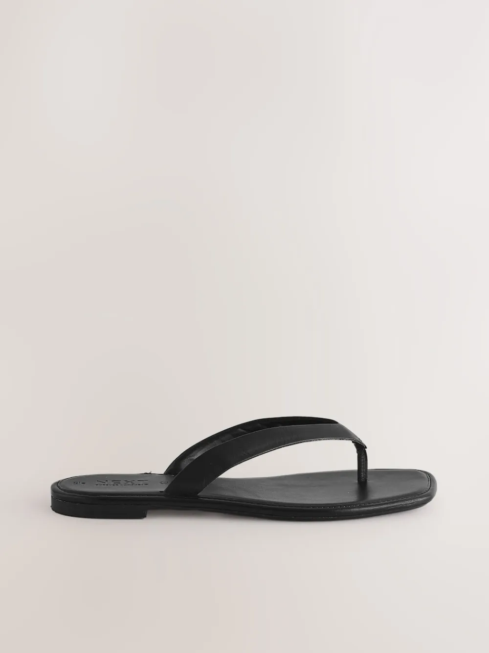 Next Standard/Wide Fit Square Toe Thong Sandals Black Leather Discount