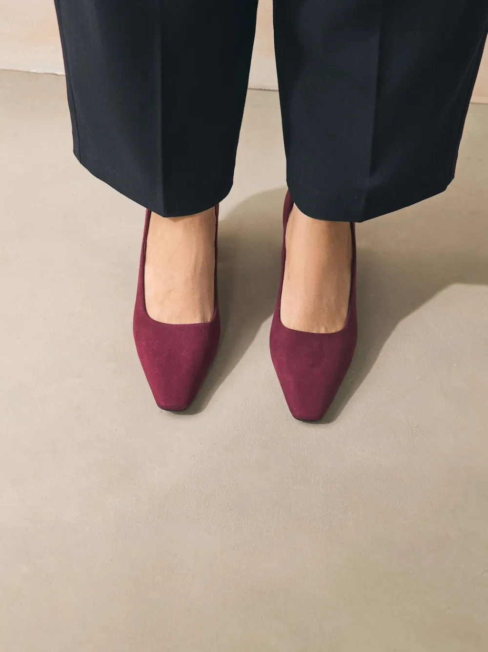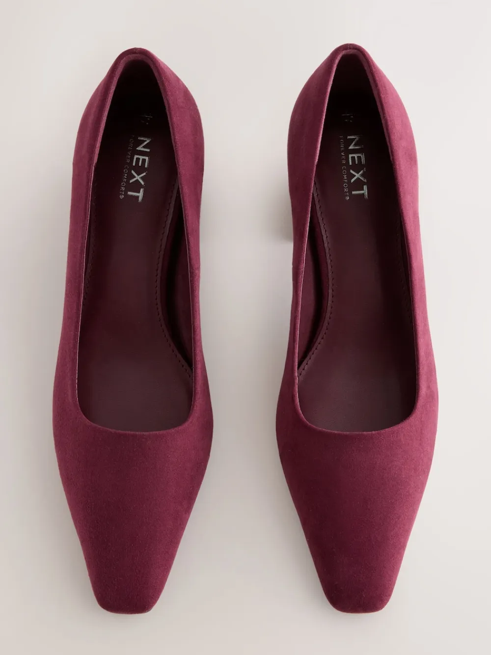 Next Standard/Wide Fit Standard Chisel Toe Block Courts Burgundy Red Clearance