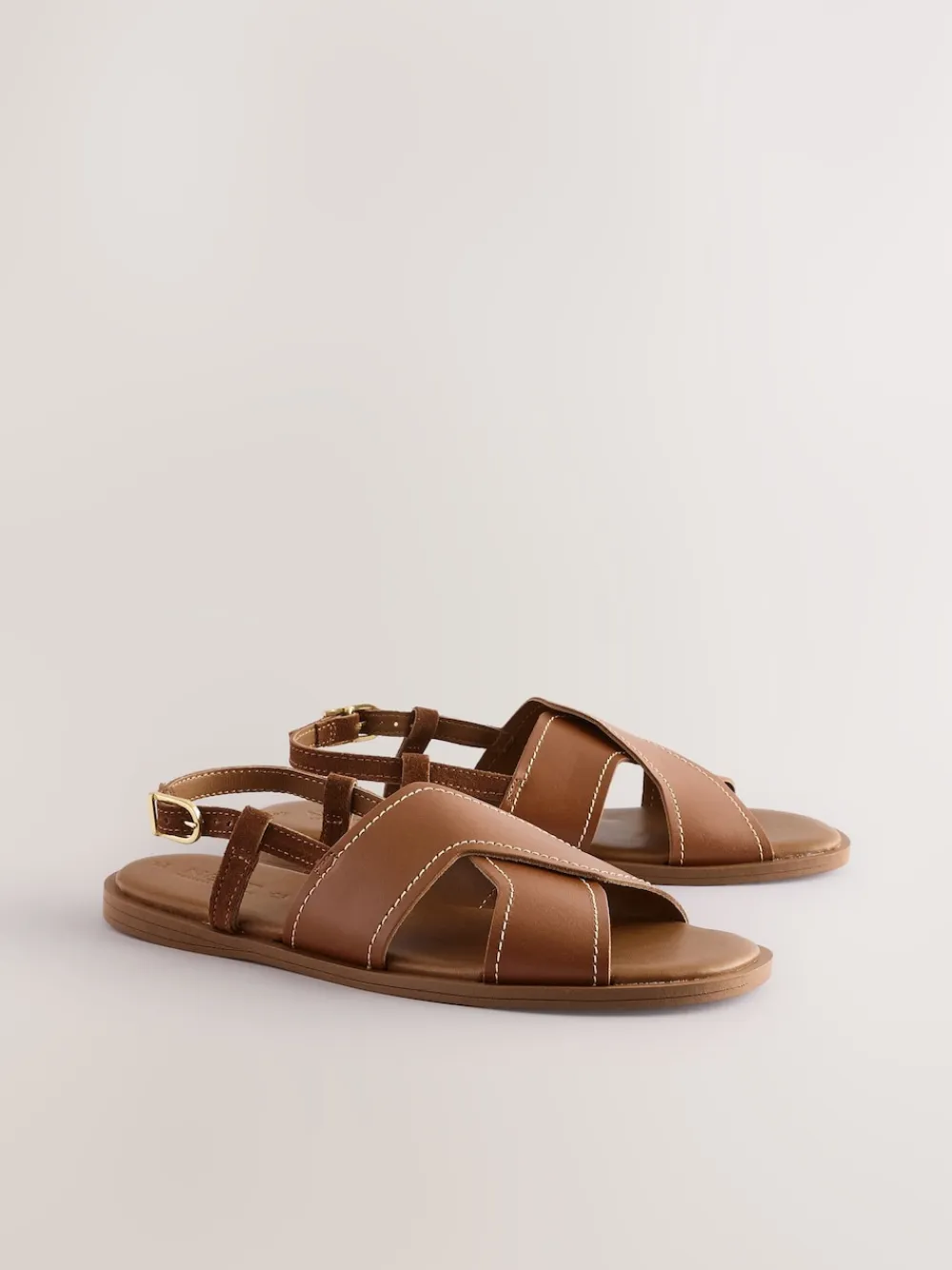 Next Standard/Wide Fit Stitched Slingback Sandals Tan Brown Leather Sale