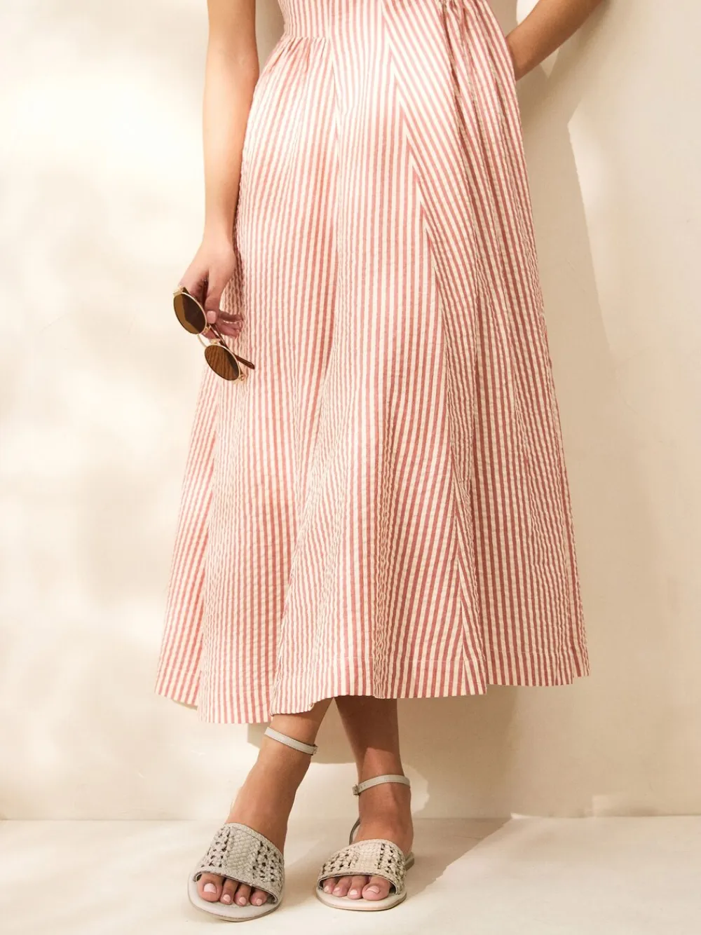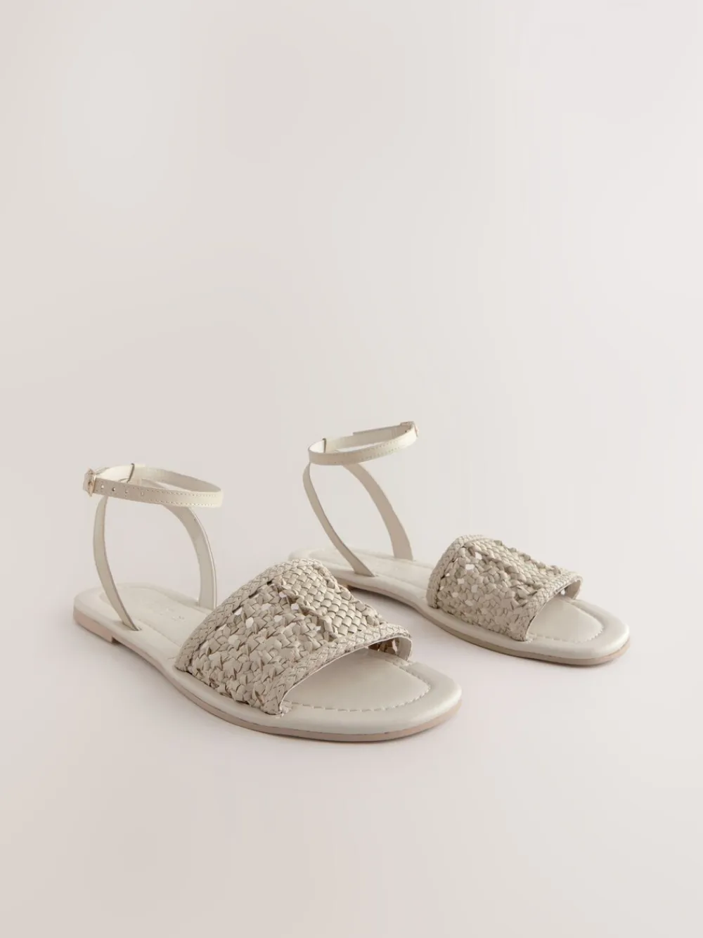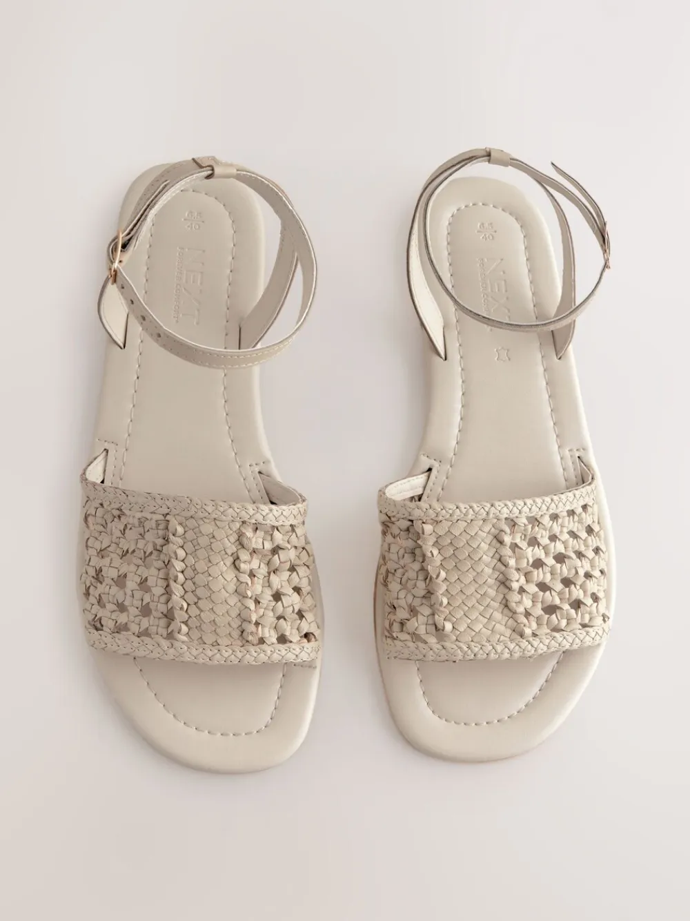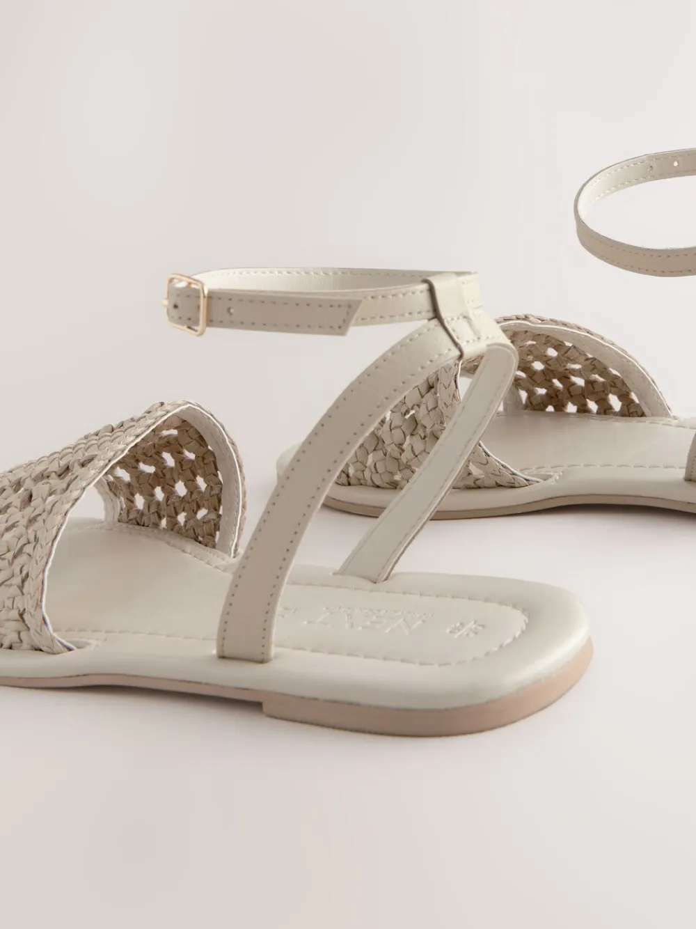Next Standard/Wide Fit Woven Flat Sandals Bone White Leather