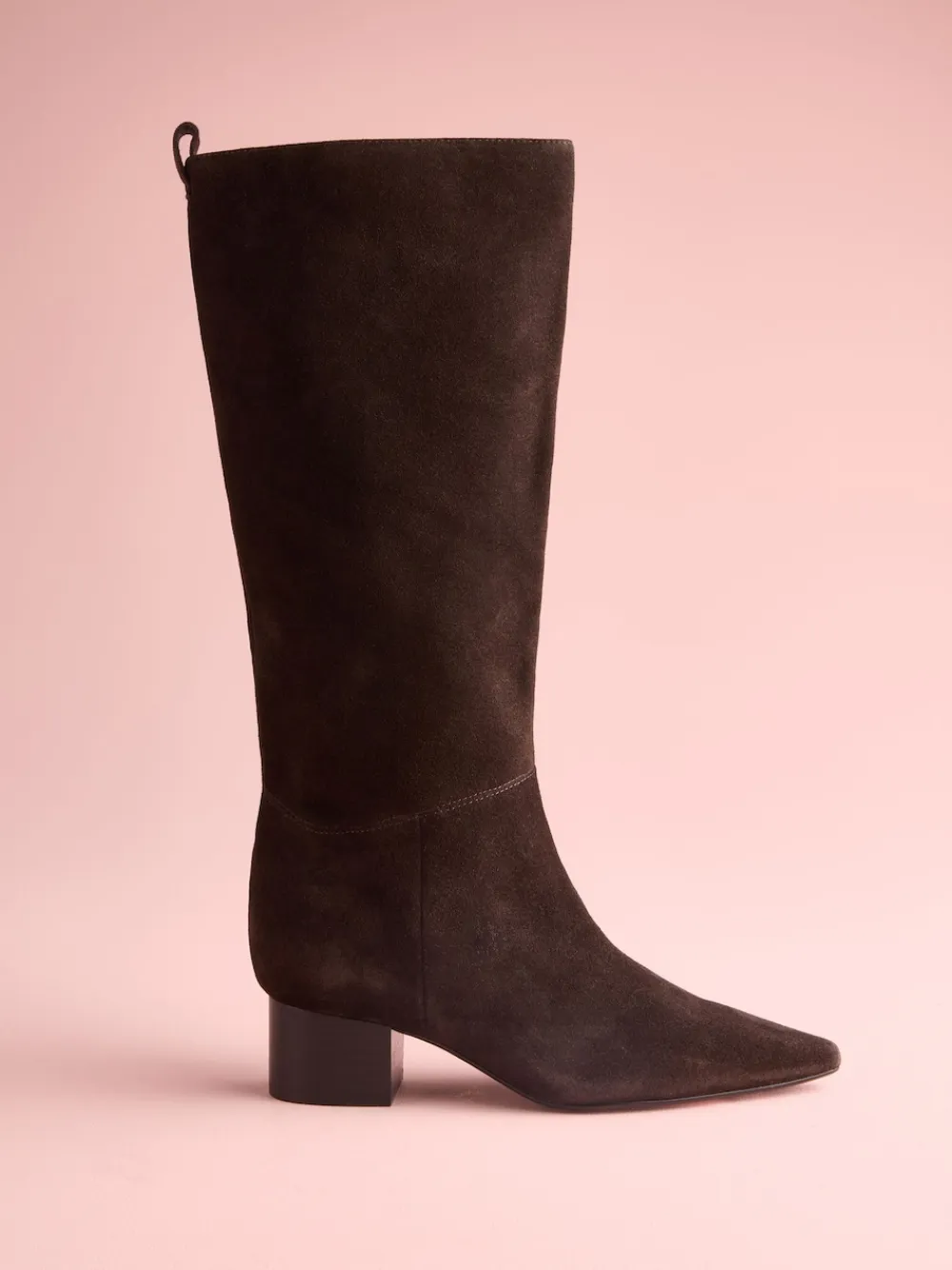 Dedicated to timeless styling and attention to detail, award-winning stylist and designer Tabitha Simmons has curated a collection with NEXT that feels fresh and of-the-moment. These elegant Tabitha Simmons x Next Cassidy knee high boots are crafted from luxurious brown suede. They feature a timeless block heel and a chic silhouette with Forever Comfort® padding that ensures that style doesn’t compromise on wearability, making them perfect for all-day chic. Forever Comfort® padding Brown suede Knee high length Block heel Heel height 5cm. Upper – Leather, Lining & Sock – Textile, Other Materials, Sole – Other Materials.