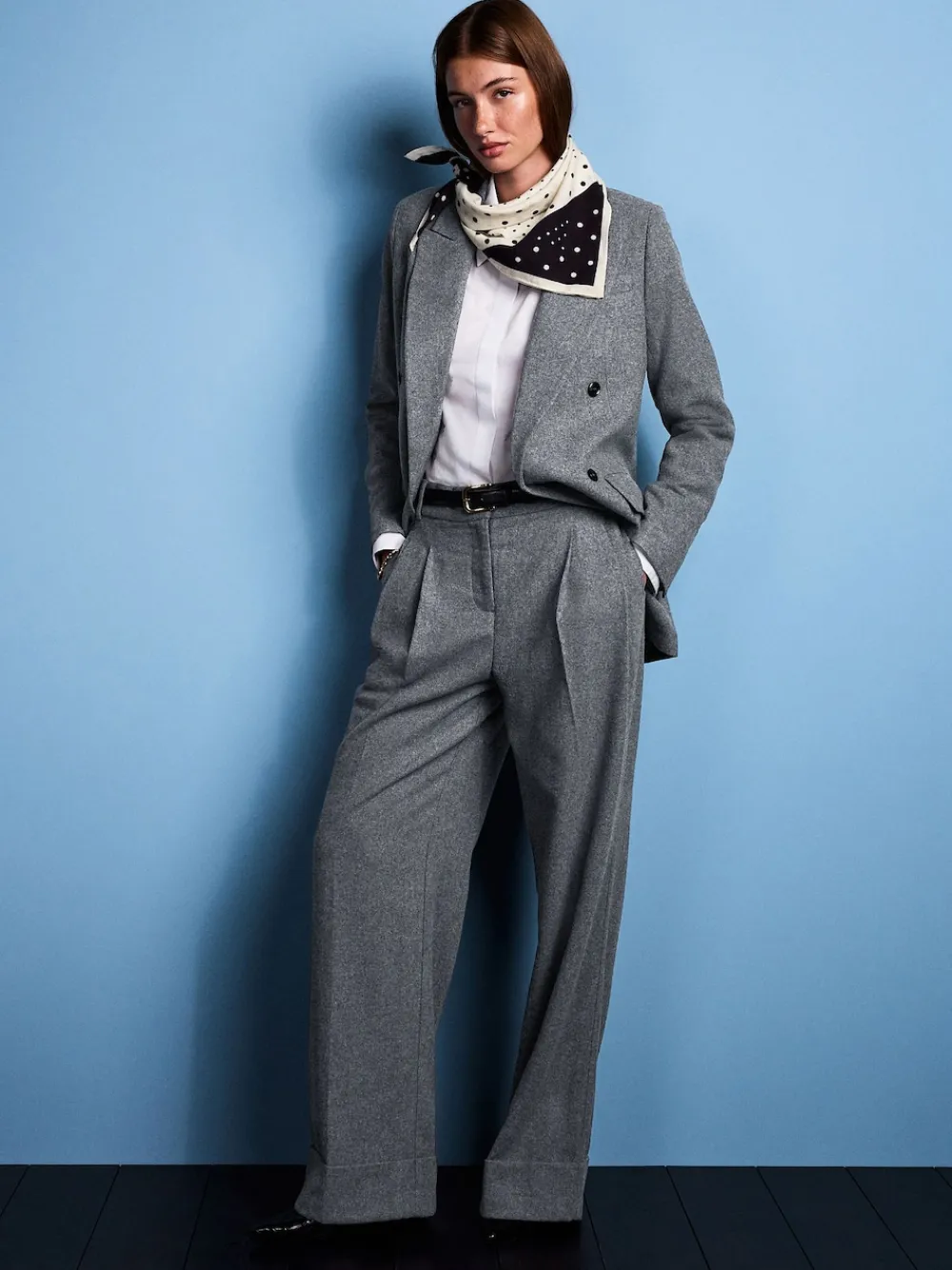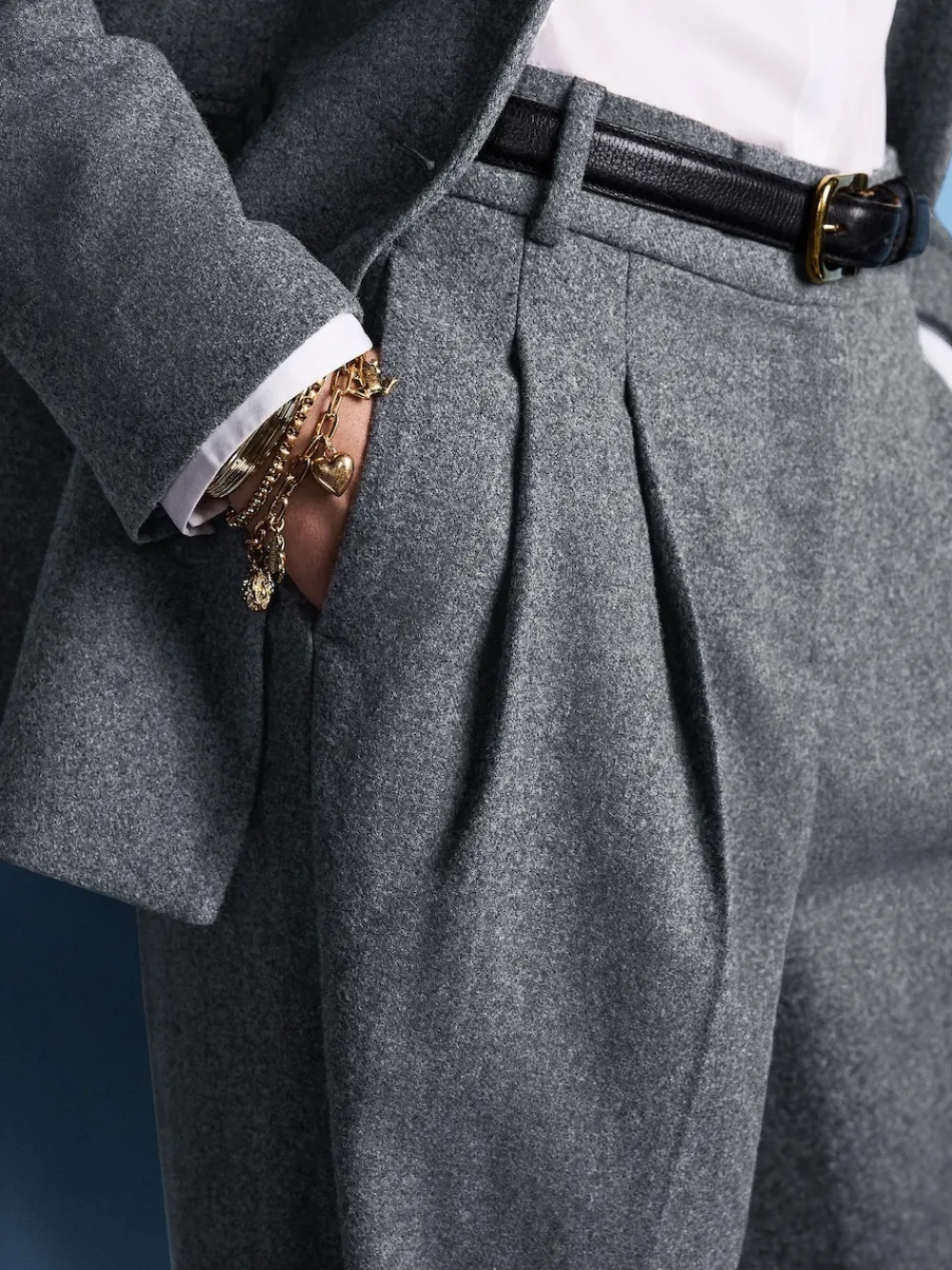 Dedicated to timeless styling and attention to detail, award-winning stylist and designer Tabitha Simmons has curated a collection with NEXT that feels fresh and of-the-moment. Discover designs that are easy-to-wear and add enviable cool to any outfit. Elevate your workwear with these wool-blend grey trousers. The wide-leg silhouette and soft handle fabric offer a comfortable and sophisticated feel. A refined folded hem and button fastening add a stylish touch, making them perfect for a polished, on-trend look. Wool blend Soft handle fabric Wide leg Folded hem Button and zip fly fastening Regular to fit inside leg 29″ / 74cm. Machine washable. 50% Recycled polyester, 50% Wool. Items with the curve logo are available in sizes 18 and above.