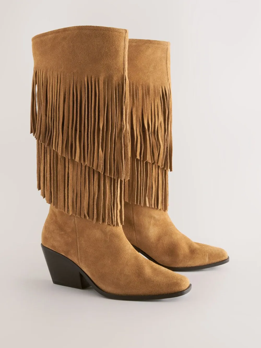 Next Tan Brown Suede Forever Comfort® Fringed Knee High Cowboy Boots Best