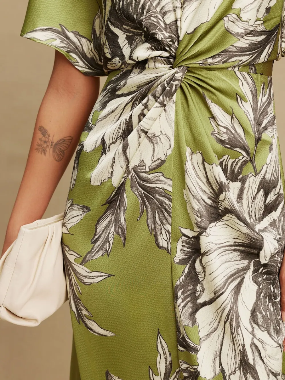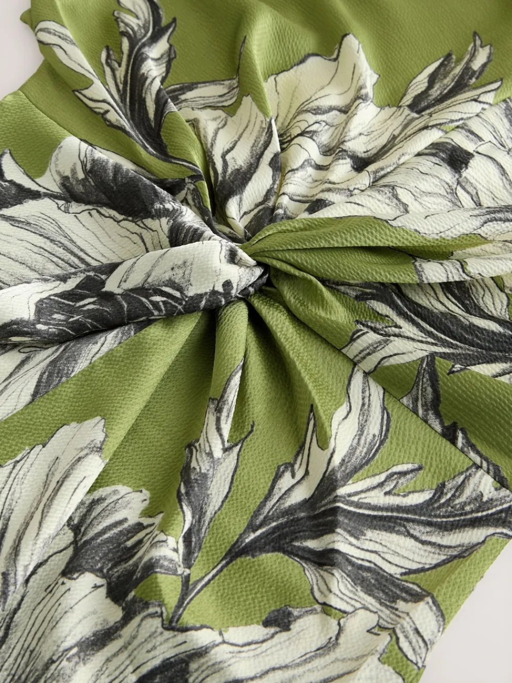Next Textured Satin Short Sleeve Twist Front Midi Dress Green/Ecru Sale