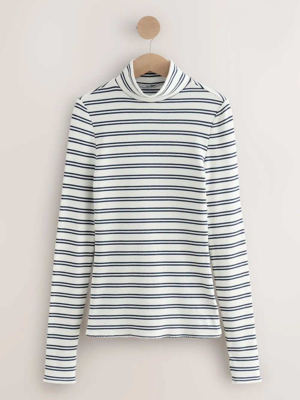 Next Thermal Maximum Warmth Cosy Ribbed Roll Neck Top Navy/Cream Stripe Best