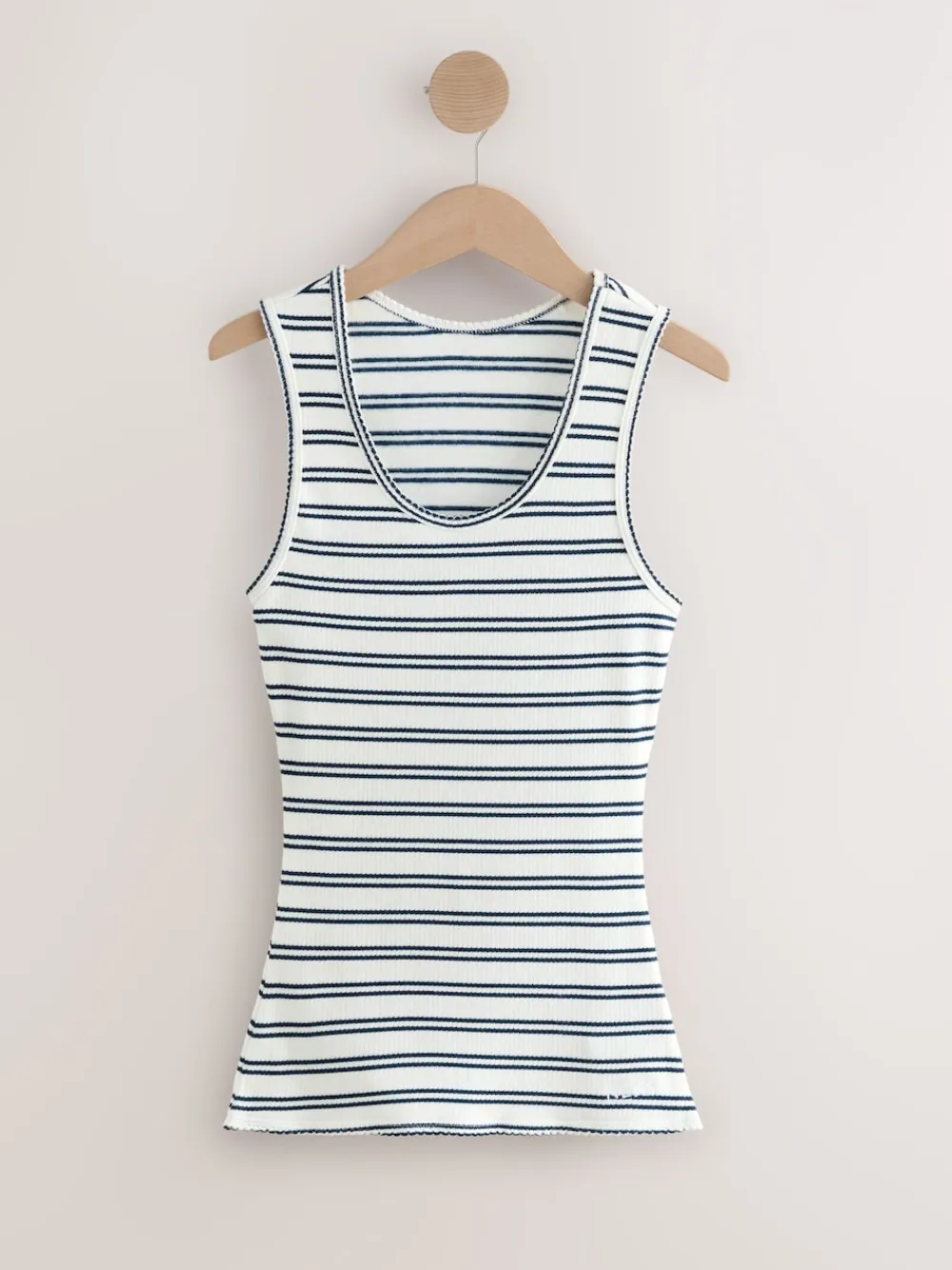 Next Thermal Maximum Warmth Cosy Ribbed Vest Navy/Cream Stripe Online