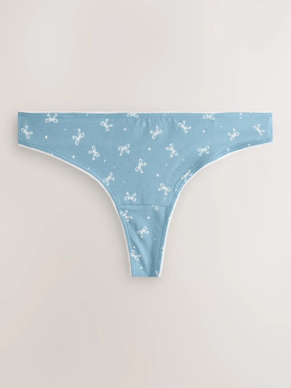Next Thong Cotton Rich Knickers 7 Pack Blue Bows New