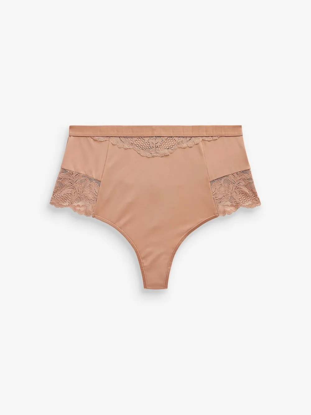This black & nude two-pack of shaping thongs are high-waisted for a comfortable and flattering fit underneath any outfit. Featuring soft lace for added feminine detail. Pack of two Lace trim detail High-waist thongs Tummy control Elasticated waistband Cotton gusset Machine washable. 2 x Briefs Main 63% Nylon, 28% Elastane, 9% Recycled Nylon. Gusset 100% Cotton. Items with the curve logo are available in sizes 18 and above.