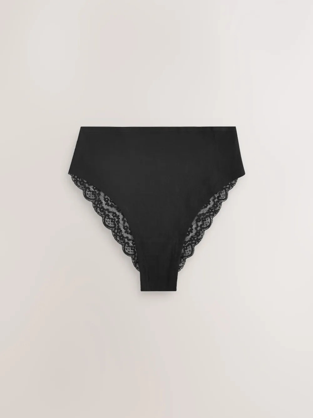 Next White/Black/Grey High Rise High Leg Cotton Lace Knickers 4 Pack Sale
