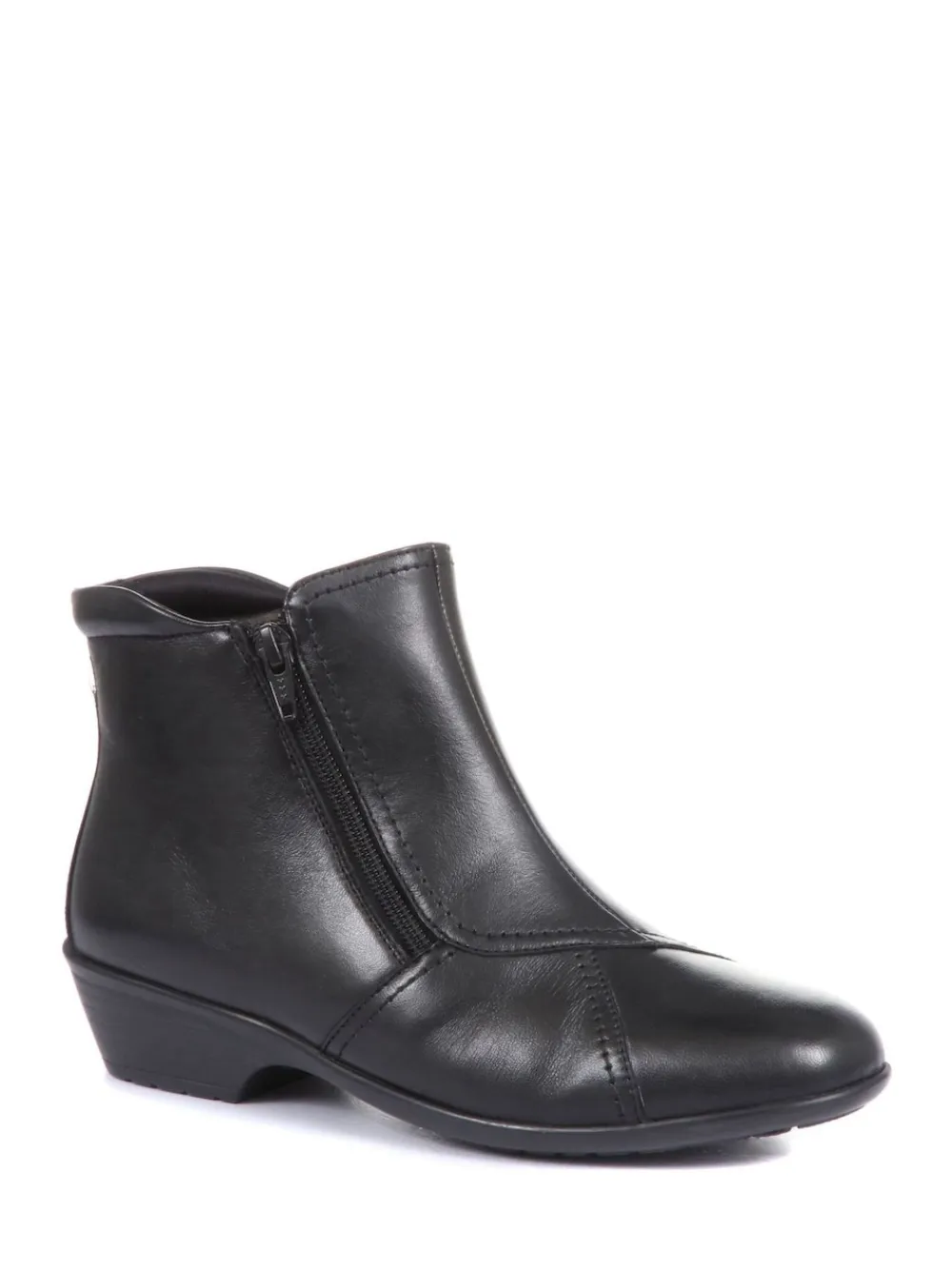 The most comfortable boots for women are back for a new season! With their dual zip design, these super-soft ladies ankle boots open extra wide for a care-free fit. The sleek asymmetrical design offers a stylish look whilst the underfoot cushioning and a feather-light sole keep you feeling fresh. Heel height 4cm. Upper – 100% Leather, Lining. and Sock – 100% Leather. Sole – 100% Rubber.