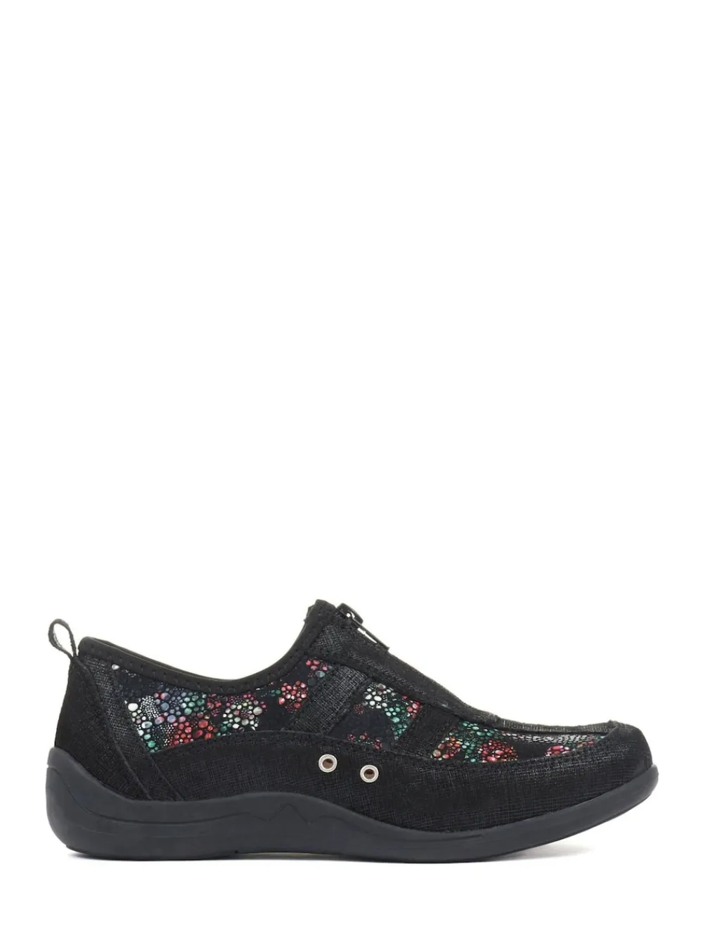 Equal parts style and comfort, these women’s trainers are crafted with high-quality leather and decorated with flashes of shimmering fabric – adding a colourful spark to the season. With their full leather lining, cushioned insoles and added arch supports, you can slip your feet straight into comfort. Upper – 100% Leather, Lining. and Sock – 100% Leather. Sole – 100% Rubber.