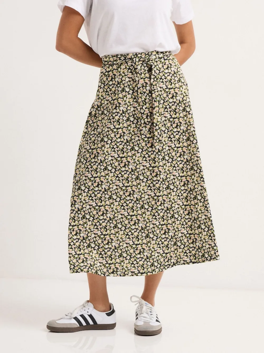 Fit & Fashion Notes:Restart your skirt rotation with this floral design. Made from a soft jersey fabric, it features a belt tie fastening and completes at a midi length. Style it with a plain top and trainers for a cool twist on your casual looks!Features: Midi length, Floral print, Belt tie design, Made from a soft jersey fabric, 95 polyester, 5 elastane, Machine washable Machine washable. 95% Polyester, 5% Elastane.