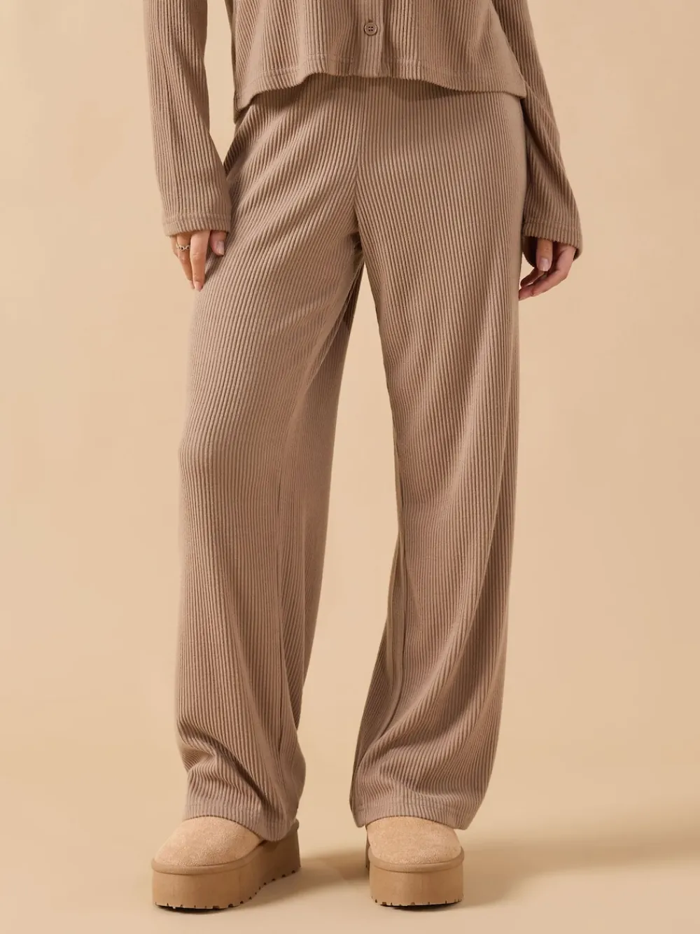 PixieGirl Petite Ribbed Wide Leg Joggers Brown
