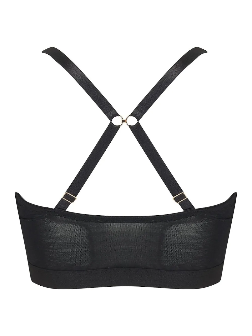Black India loves worn-to-be-seen lingerie. So prepare to dazzle in this luxurious longline bra. Far too pretty to keep under wraps, its daring mesh and fabric panels were made to show off, while the longline style and cups that start high on the shoulder straps will ensure you don’t feel too exposed. With built-in underwire to keep you firmly but comfortably in place, the deep plunge adds even more definition. Front-fastening with gold hook-and-eyes, this longline bralette shapes, supports, and looks perfect when worn with a high-waisted skirt. Hand wash only. 80% Nylon, 20% Elastane.