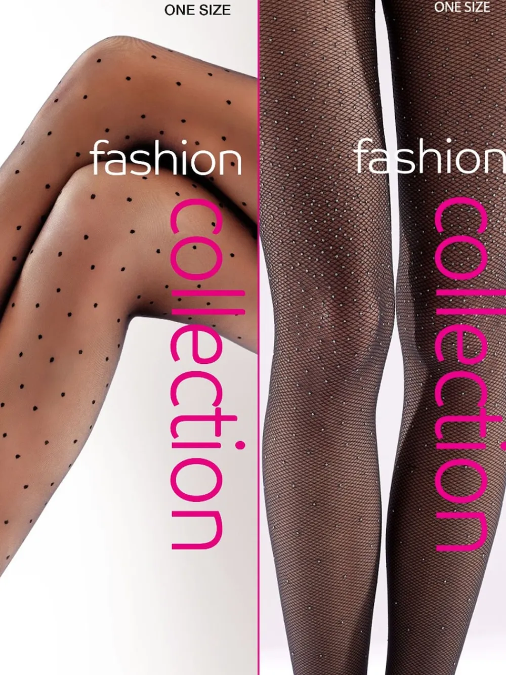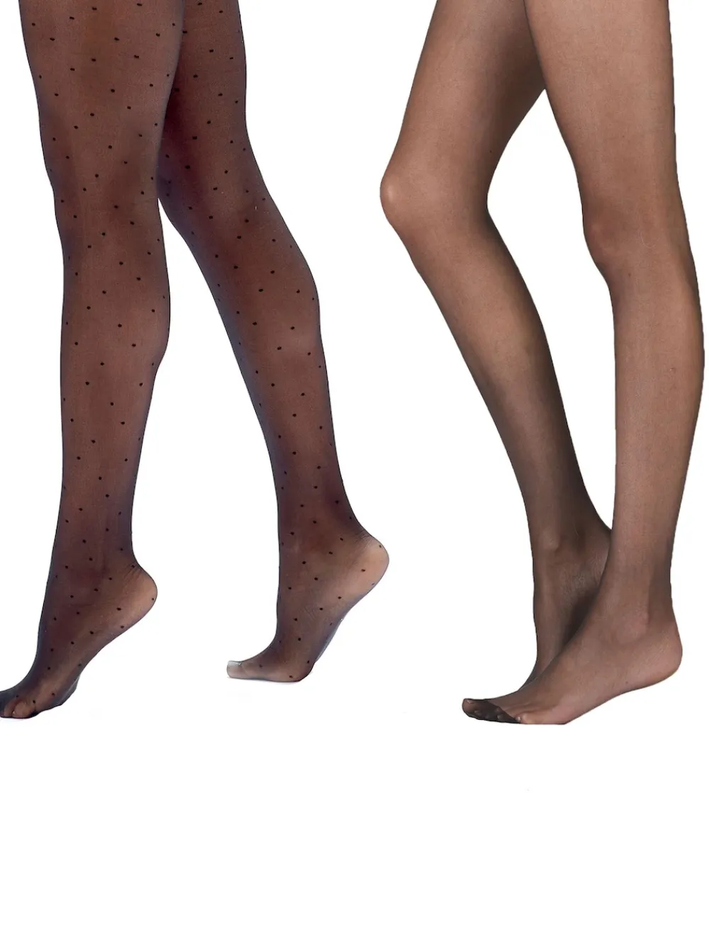 This Pretty Polly 2 pair pack consists of one of our fabulous on trend fashion Tights and one of our classic best selling sheer Tights. Classic Nylon 10 Denier Gloss Black Tights in medium gives you a flawless, elegant finish. Irresistibly soft to touch, making your legs ultra smooth. Elevate your sheers with our Pin Spot Tights. These fashion Tights are a subtle way to do polka dots. The sheer leg look with a scattered spot design looks perfect teamed up with your favourite dress or skirt. Hand wash only. 83% Nylon, 15% Elastane, 2% Cotton.