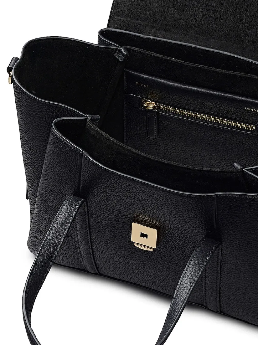 We don’t leave things up to chance. It’s why we create thoughtful designs, like The Chancery shoulder bag, made using the best soft grain leather. Smart inside and out with neat folded construction, three compartments and a secure cut-out flap, it brings luxury to everyday. Grain leather. Slim padded handles. Cut-out flap fits around the handles. Push-lock fastening. Bonded faux suede lining. Three compartments. Interior zipped pocket. Curved logo trim. Comes with a dust bag. Main 100% Leather. Lining 65% Cotton, 35% Polyester.